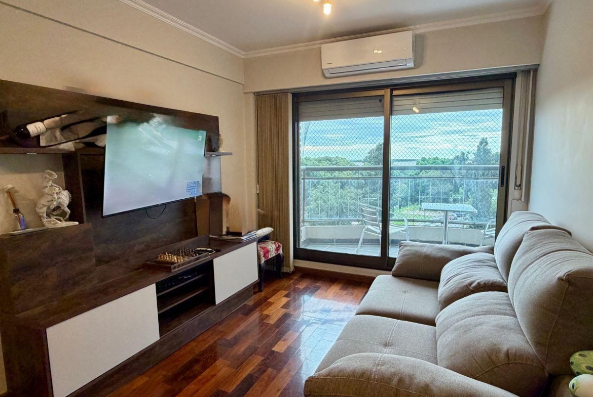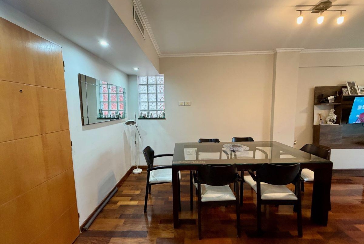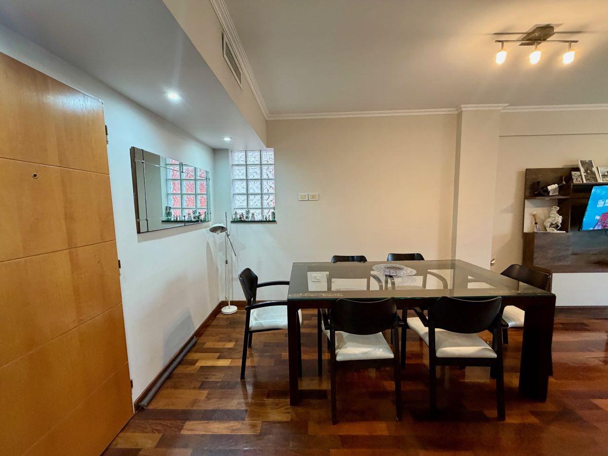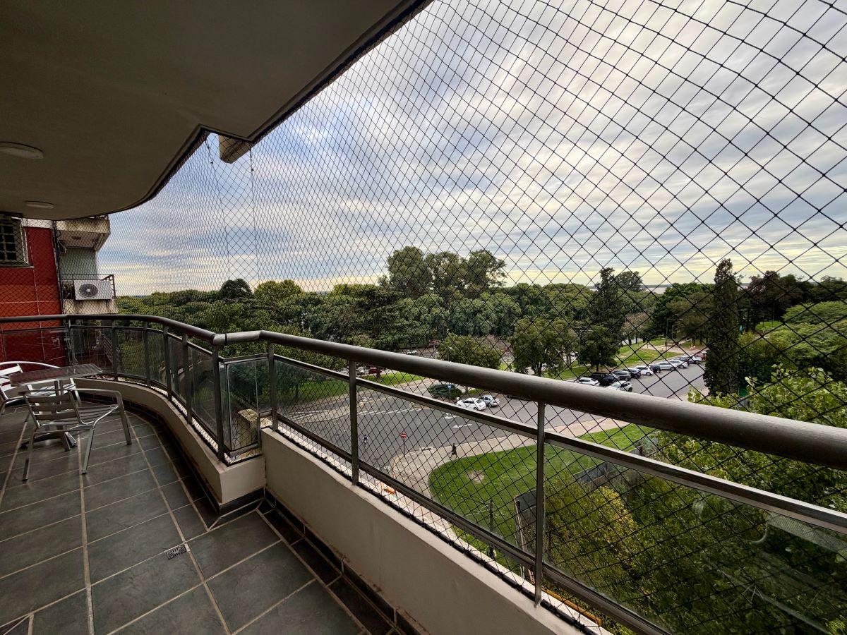 Piso en Alquiler de 3 dormitorios con cochera equipado de 135 m2 totales. Living comedor amplio con salida a amplísimo balcón terraza a la calle. Cocina independiente equipada con muebles de muy buena calidad. Dormitorio principal en suite. Dos dormitorios amplios. Otro baño completo con artefactos de 1 era calidad.