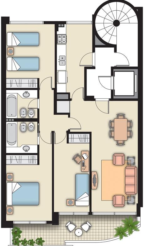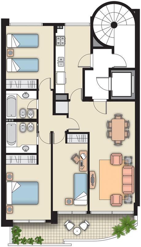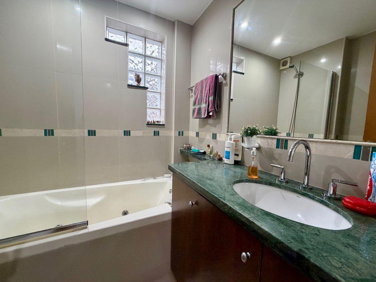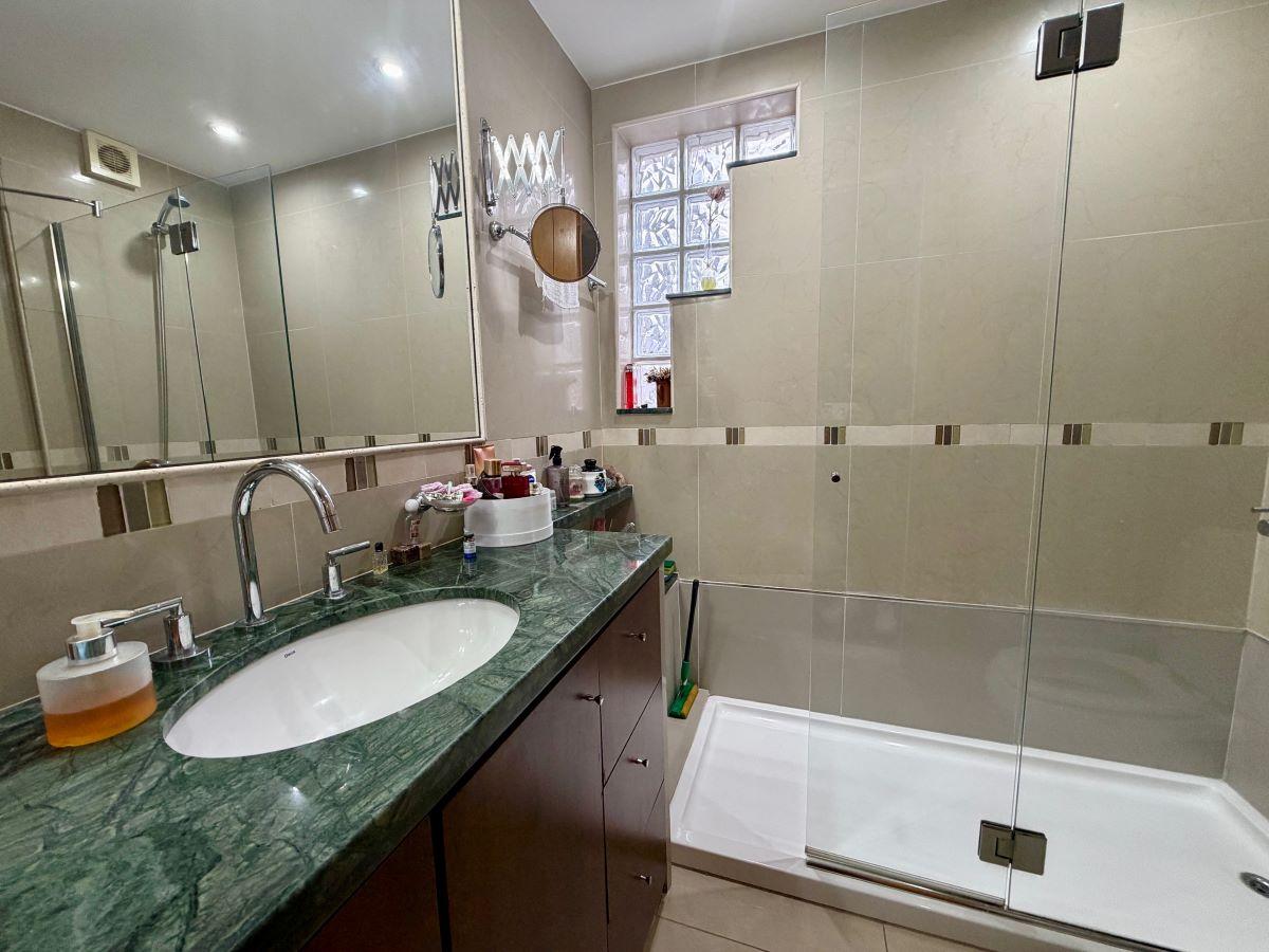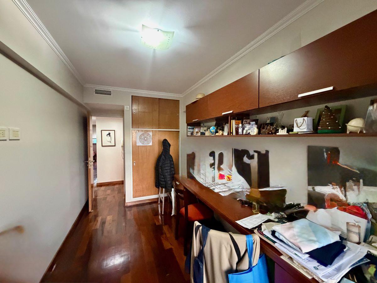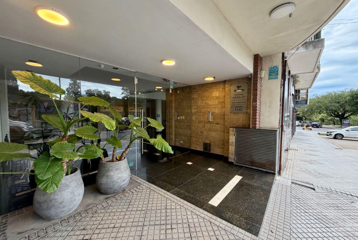 Equipamiento y detalles de la unidad: Puertas de ingreso blindadas color marrón en madera. Pisos de madera de primera plastificados en todos los ambientes. Cocina: alacenas y bajo mesadas completos, cocina de acero inoxidable con encendido electrónico y horno visor marca DOMEC, purificador de acero marca DOMEC, calefón marca DOMEC. Heladera marca ELECTROLUX color gris frost free y Water dispenser. Microondas marca DeLonghi. Lavarropas marca LONGVIE cleanium EuroDesign color gris. Placares con interiores terminados, cajones, barral y estantes. Aberturas exteriores de aluminio anodizado y cortinas de enrollar. Baños completos con mamparas. Uno con receptáculo de ducha y el otro con bañera. Accesorios cromados. Vanitory de madera con mesada de mármol y bacha línea DECA. Extractores marca CATA. Sanitario marca ROCA línea superior. Griferías FV. Equipo de aire central calor marca GOODMAN con salida a todos los ambientes. Aires acondicionados tipo splits nuevos marca PHILCO color blancos instalados en living comedor y Suite. Controles de aires. Termostato. Portero Visor marca Bellsonic. Mueble de pie en melamina color blanco alto en sector escalera. Red en balcón. 4 sillas y mesa cromada de exterior en balcón. Mesa con vidrio y 6 sillas en juego en living comedor. Sillón color gris desmontable con 2 asientos adicionales. Mueble de TV empotrado. Cama de 1 plaza con colchón y mesa de luz y mueble haciendo juego. Cama doble plaza en suite con respaldar empotrado y mesas de luz incorporadas en madera. Cortinas de interiores de diseño corredizas. Cocheras con portón de ingreso con control remoto.