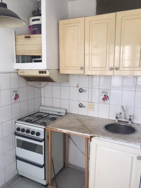 Departamento de 40 m2. Interno. Orientación sur. Muy luminoso. Living comedor con pisos de cerámicos. Cocina semi separada totalmente equipada (alacenas y bajo mesada, cocina y termotanque). Espacio para dormitorio (no se encuentra totalmente dividido del living). Placard. Baño completo con ducha. Persiana.
