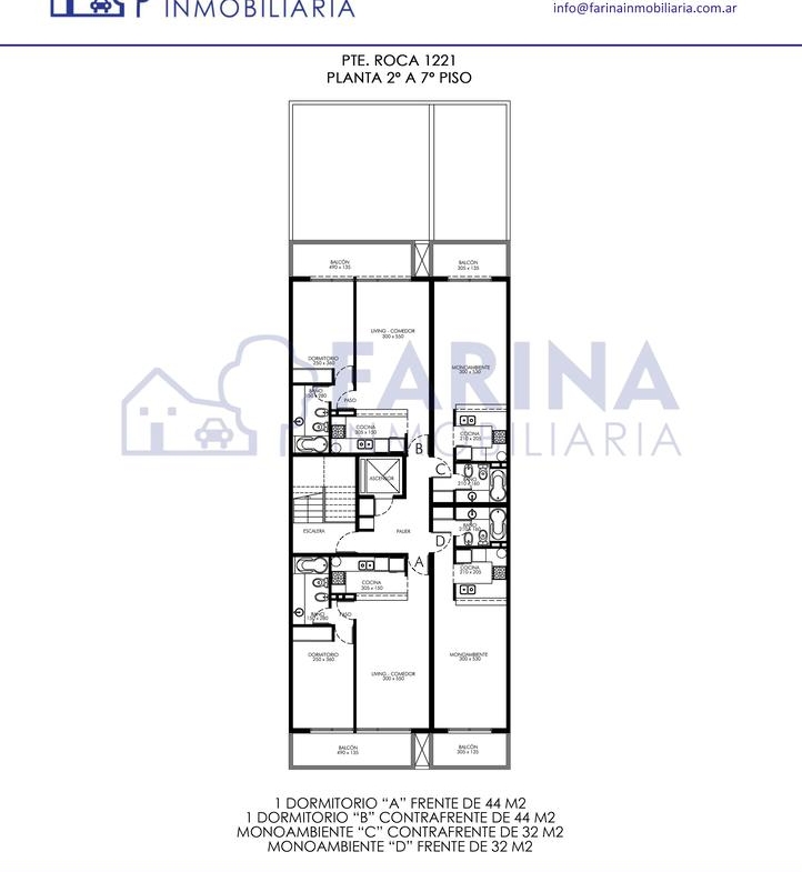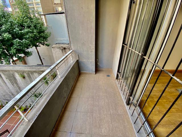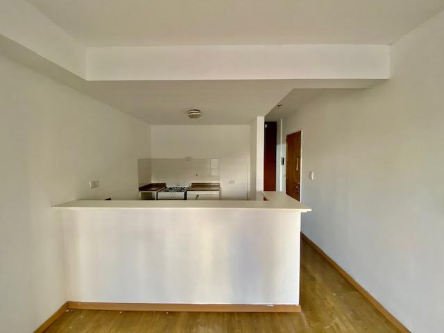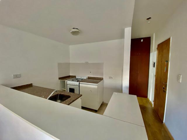 Monoambiente contrafrente de 32 m2: ambiente único con salida al balcón. Cocina semi separada por una barra. Baño completo.-
