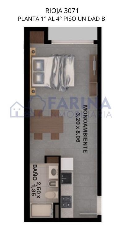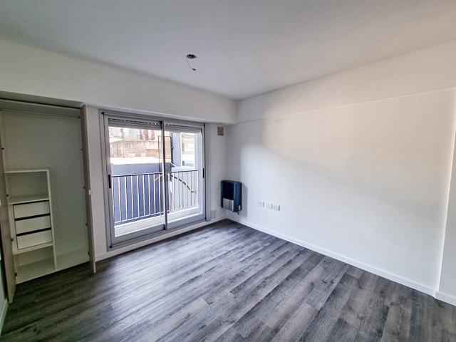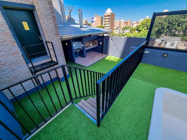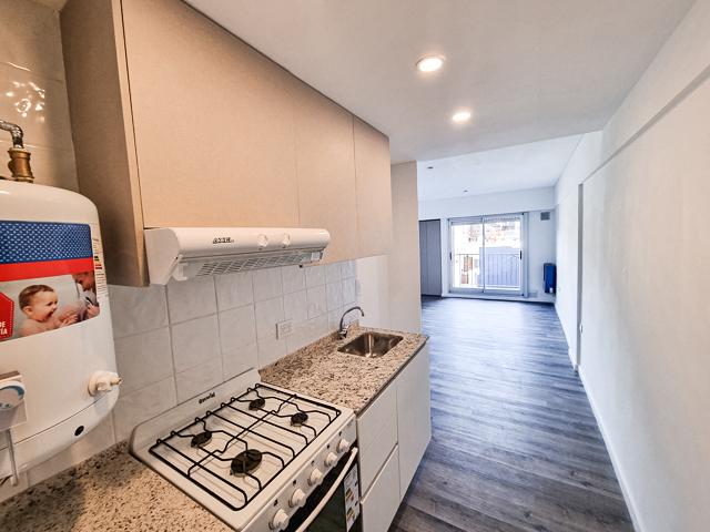 Monoambiente a estrenar con pileta y parrillero. Contrafrente de 31,93 m2 (30,45 m2 cubiertos + 1,48 m2 de balcón). Cocina semiseparada totalmente equipada. Placard. Un baño completo.