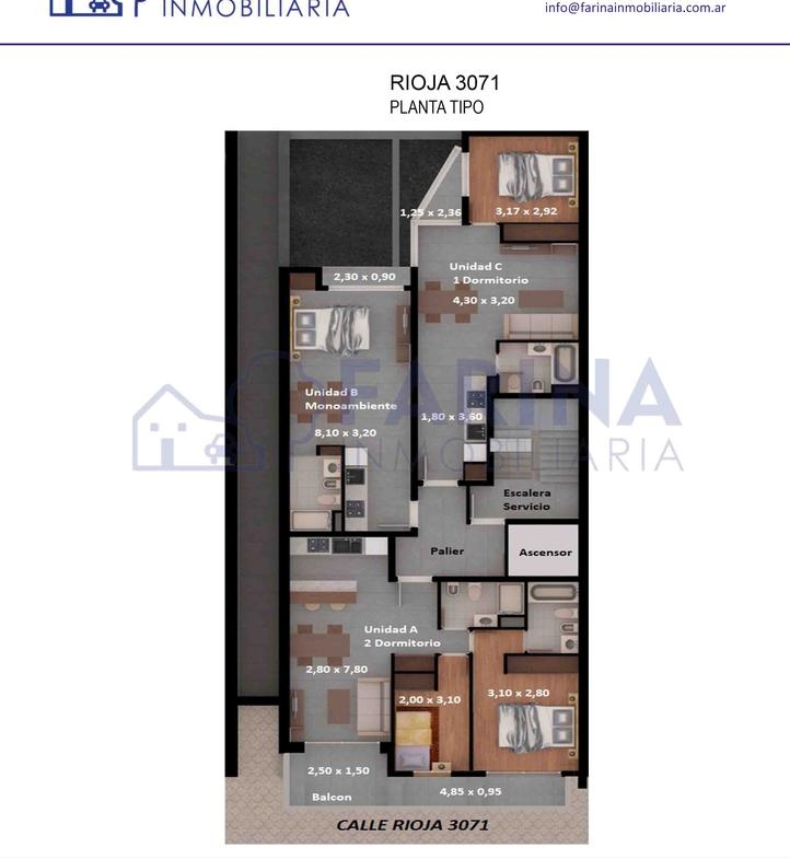 Edificio de planta baja y 4 pisos. Compuesto por departamentos monoambientes, 1 dormitorio y 2 dormitorios. Terraza con parrillero, piscina y solarium.