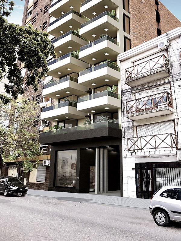 De planta baja y 8 pisos compuesto 4 unidades por planta de 1 dormitorio. Quincho, piscina y solárium. Espacio de coworking. Cocheras