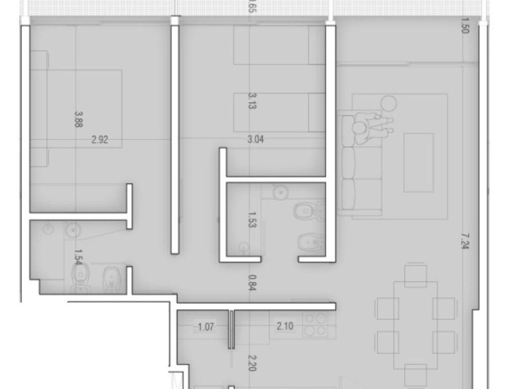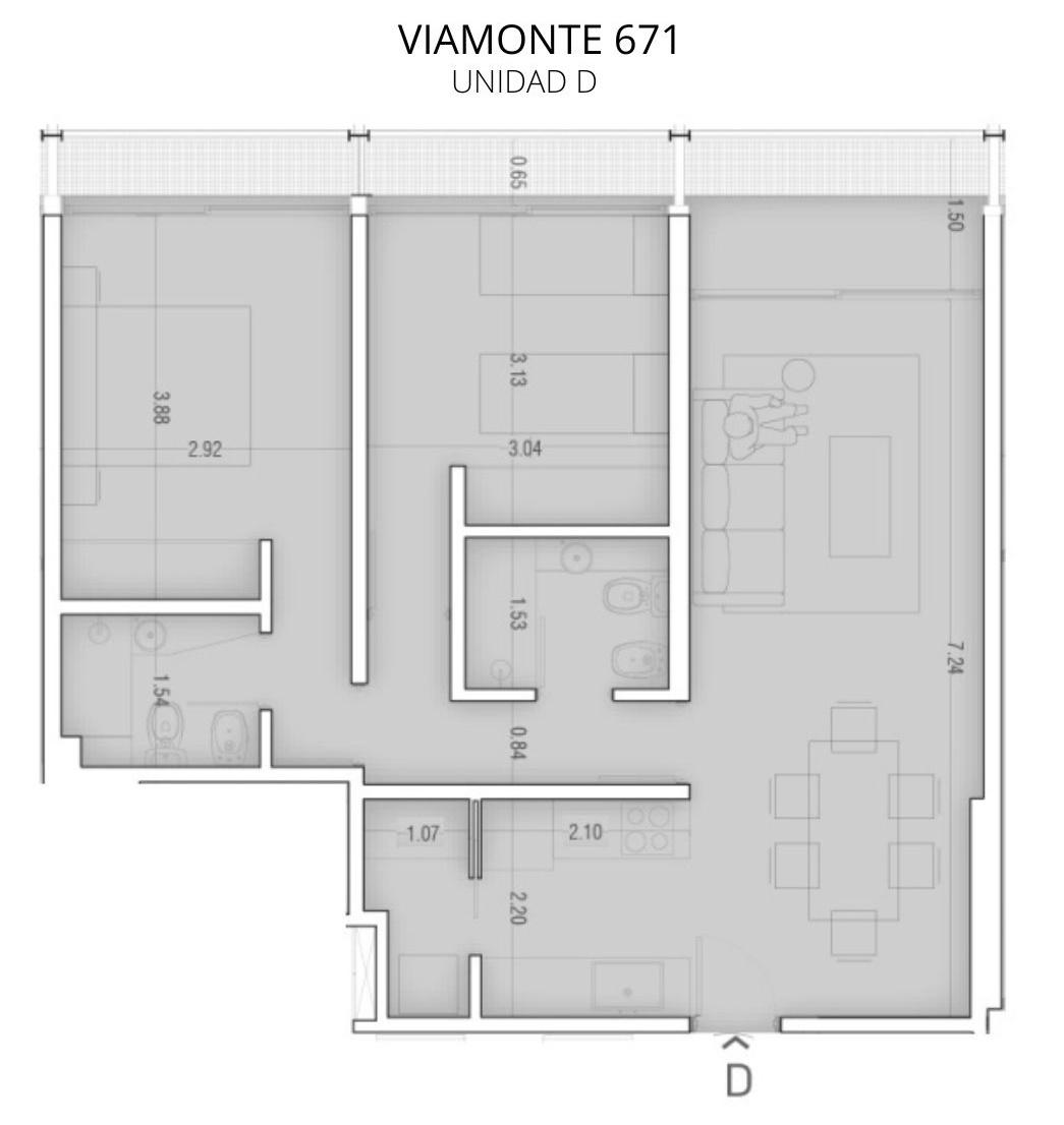 DEPARTAMENTO DE 2 DORMITORIOS AL CONTRAFRENTE DE 81.03 M2. 67.49 M2 CUBIERTOS, 9.72 M2 DE BALCON Y 3.82 M2 DE BAULERA. COCINA EQUIPADA SEMI INTEGRADA. LIVING COMEDOR CON SALIDA AL BALCON CORRIDO. DOS DORMITORIOS PRINCIPAL EN SUITE CON VESTIDOR. OTRO CON PLACARD. LAVADERO. BAÑO COMPLETO.