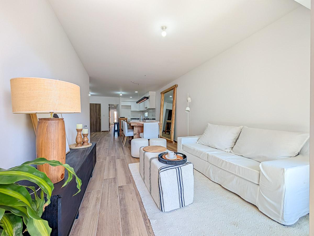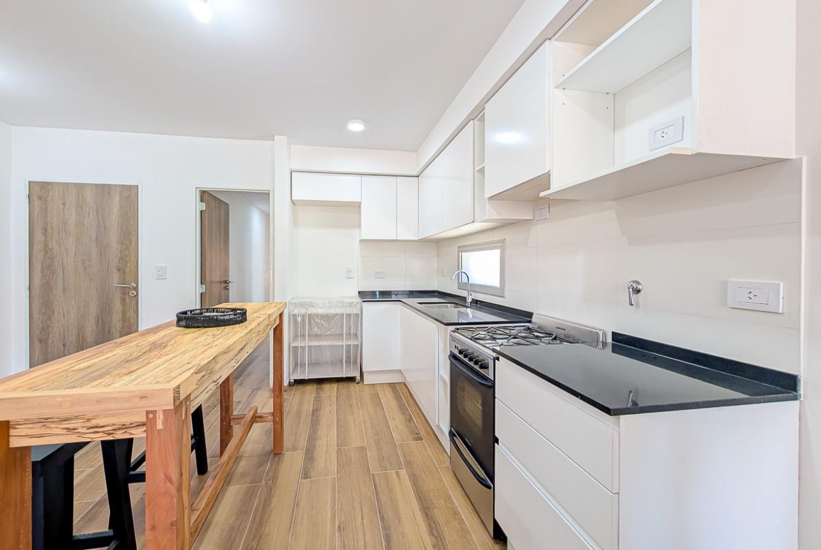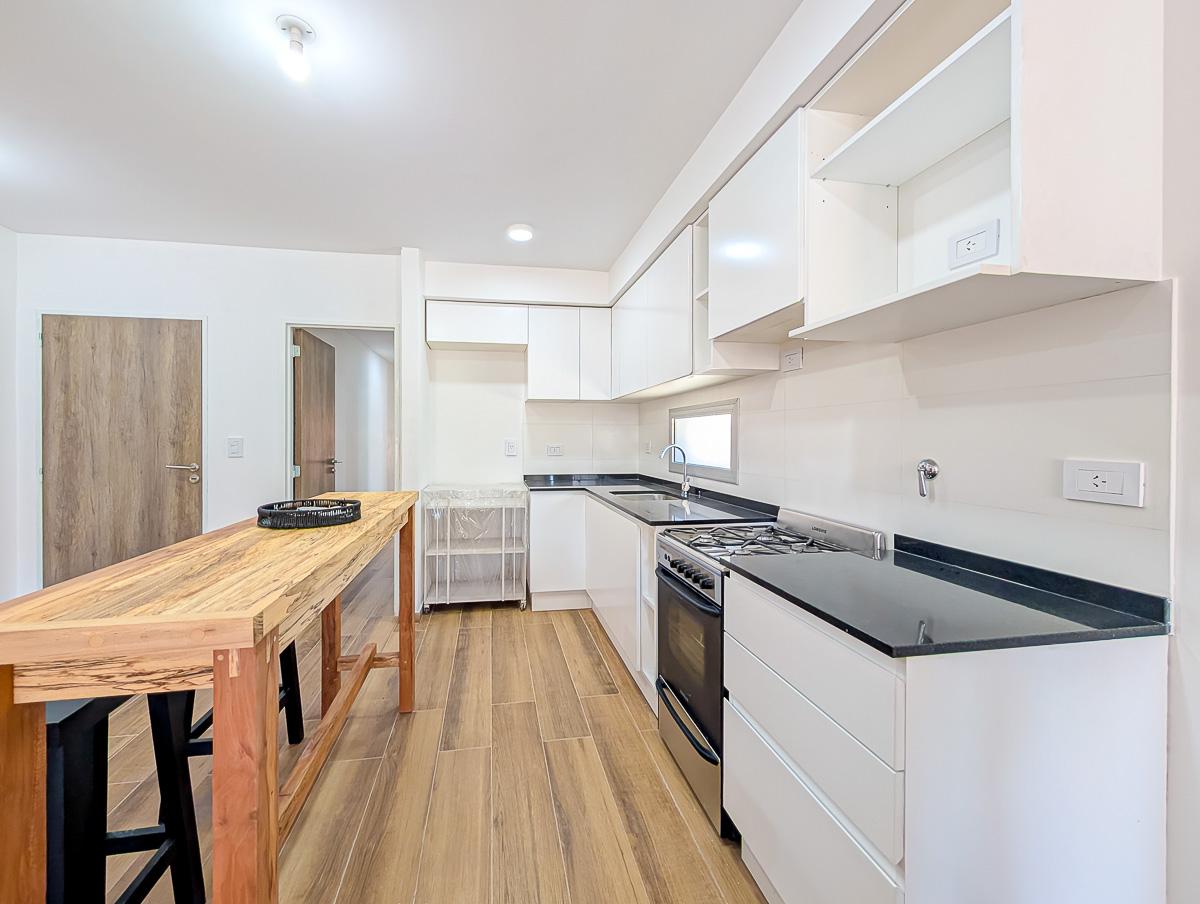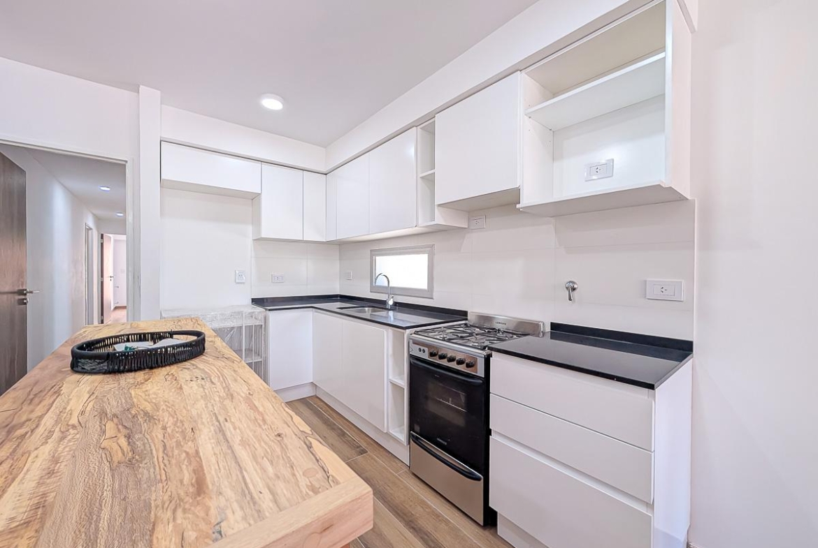 Terminaciones: pisos de porcelanato 1º calidad. En cocina: muebles bajo mesada y alacenas. Mesada de granito con bacha de acero inoxidable. Calefón y cocina. En baños: sanitarios y griferías de 1º línea. Aberturas exteriores de aluminio de 1º calidad. Frentes de placard.