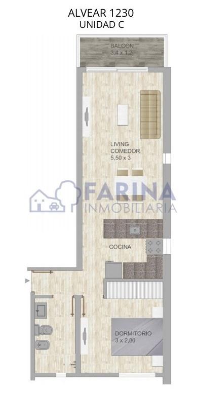 DEPARTAMENTO DE 1 DORMITORIO CONTRAFRENTE DE 49 M2 CON BALCÓN. VENTILACIÓN CRUZADA. COCINA SEPARADA POR BARRA DESAYUNADORA DEL LIVING COMEDOR. UN DORMITORIO CON PLACARD. UN BAÑO COMPLETO CON VENTILACIÓN NATURAL.