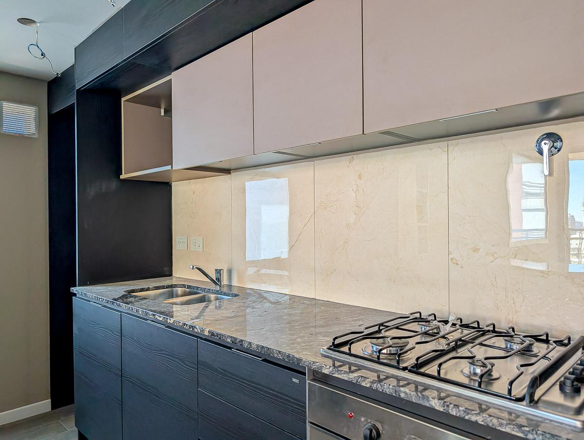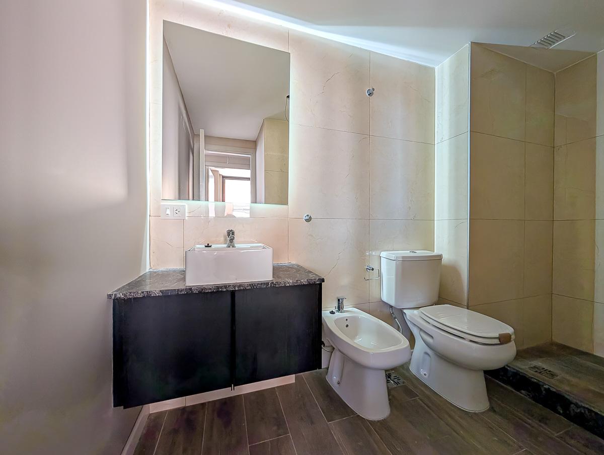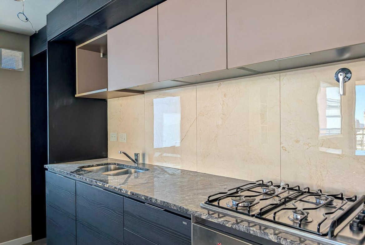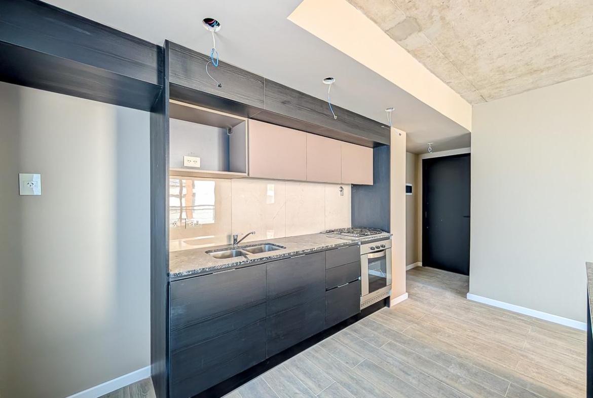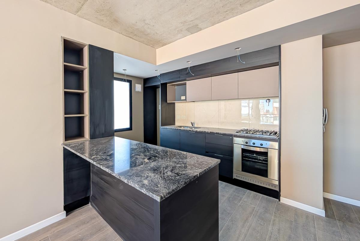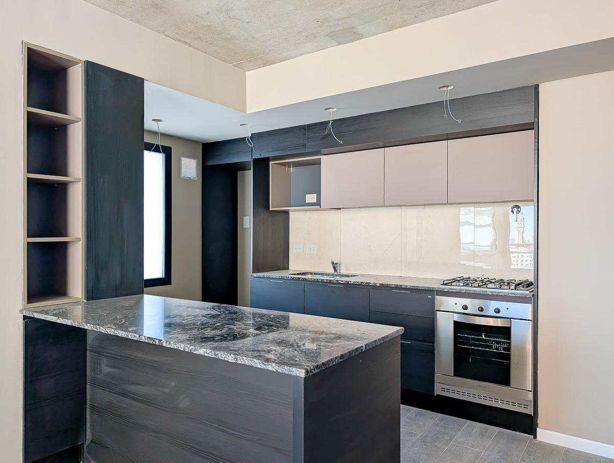 Departamento de 2 dormitorios en venta a estrenar frente sobre calle Cerrito en Barrio Abasto, Rosario, de 75.81 m2, 64.45 m2 exclusivos y 11.36 m2 de balcones. Amplio estar comedor. Cocina incorporada totalmente equipada. Dos dormitorios, el principal en suite. Placard. Baño completo.