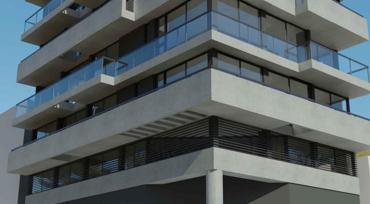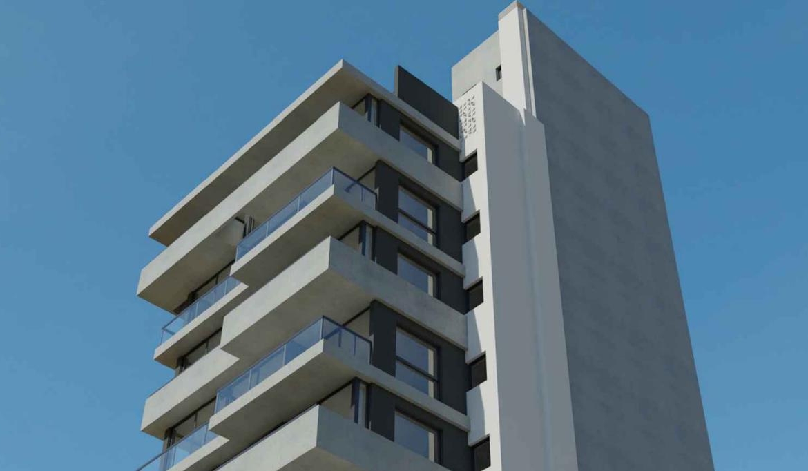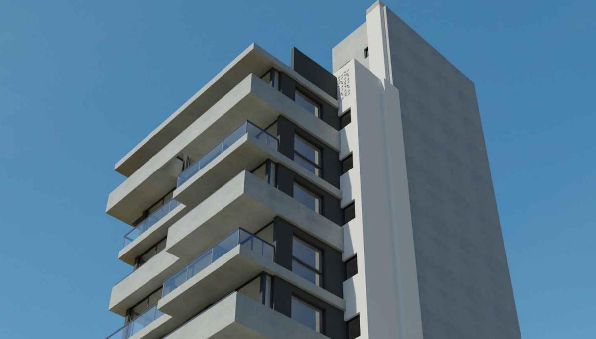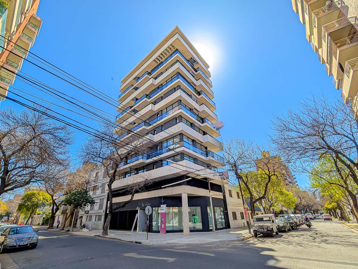 Edificio a estrenar de planta baja y 10 pisos, compuesto por tres departamentos por piso de 1 dormitorio y semipisos de 2 dormitorios. En planta baja: local comercial y acceso a cocheras con portón automático. En piso 1 oficinas.