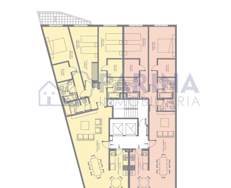 Compuesto por semipisos de dos y tres dormitorios y dos pisos exclusivos. 2 niveles de cocheras.