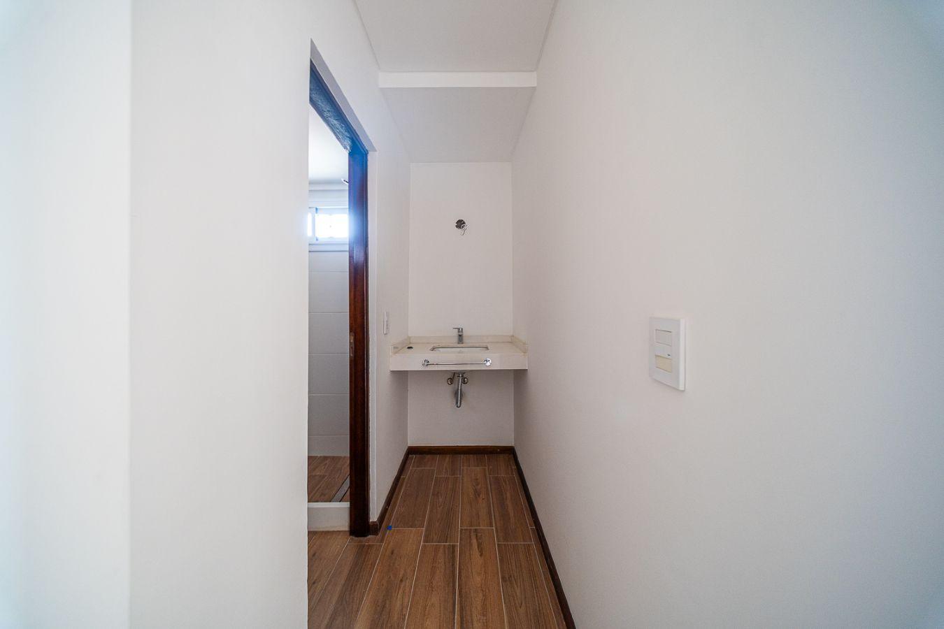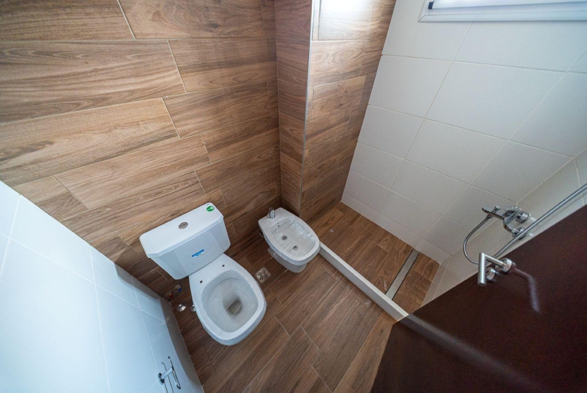 CIELORRASOS Y PAREDES EN YESO TERMINADOS CON PINTURA LATEX. ABERTURAS DE ALUMINIO BLANCO LÍNEA MODENA Y MOSQUITEROS EN ABERTURAS. FRENTES DE PLACARD CON GUIAS DE ALUMINIO. PISOS DE PORCELANATO EN ESTAR, BAÑO, COCINA Y BALCÓN. PISOS DE MADERA FLOTANTE EN DORMITORIOS. CORTINA DE ENROLLAR EN DORMITORIO. MUEBLES DE COCINA COMPLETOS EN MELAMINA BLANCA CON FILOS DE ALUMINIO. MESADA DE GRANITO GRIS MARA. PILETA DE ACERO INOXIDABLE MARCA JOHNSON. GRIFERIA MONOCOMANDO FV. INSTALACIÓN DE CAÑERIAS PARA SPLITS. SANITARIOS FERRUM. COCINA Y CALEFÓN INSTALADOS MARCA LONGVIE. CALEFACTOR EN DORMITORIO.