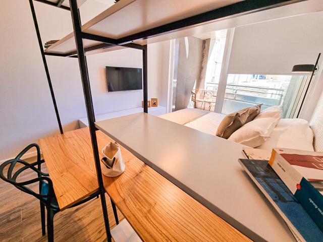 INMENSO LOFT DE CALIDAD FUNDAR CON AMENITIES DE 47 M2 CON BALCÓN CONTRAFRENTE. COCINA TOTALMENTE EQUIPADA SEMISEPARADA. UN BAÑO COMPLETO. PLACARD.