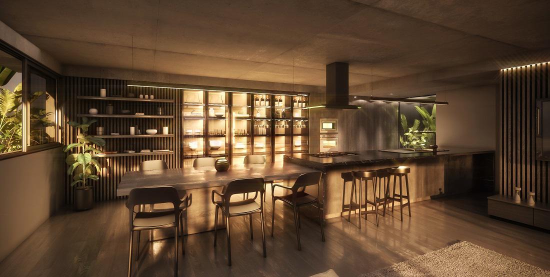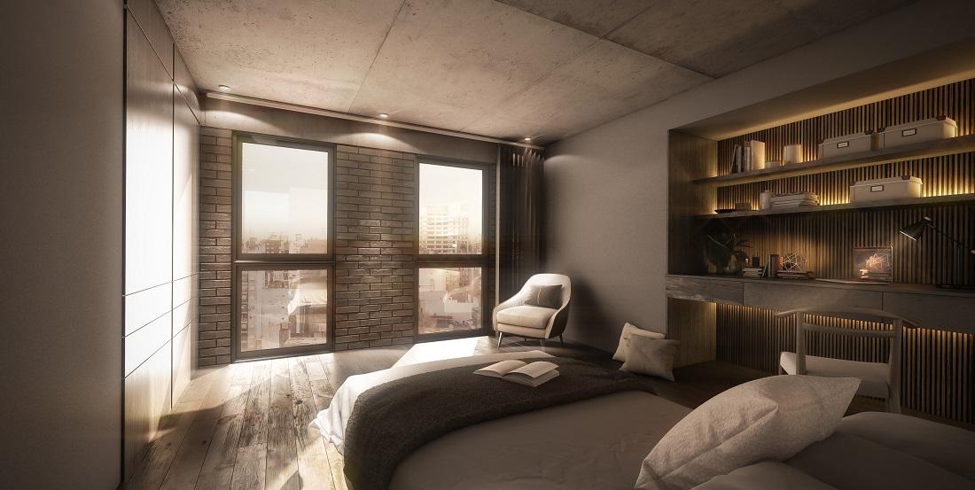 Pisos exclusivos de tres dormitorios con inmensos balcones aterrazados, contemplan parrilleros individuales, tres amplios dormitorios, el principal en suite, segundo baño completo. Balcón técnico. Cocina integrada a un amplio y moderno ambiente social de living-comedor.