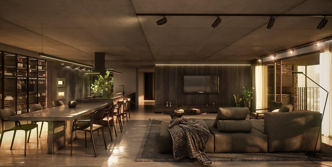 Pisos de Porcelanato de primera calidad en todos los ambientes. Enduído de yeso. Losa hormigón en techo en balcones. Yeso aplicado en estar-comedor y dormitorios, cielorraso suspendido sobre ambientes de servicio. Aberturas en aluminio negro con vidrio DVH. Mueble de cocina con bajo mesada y alacena completo, mesada en granito o similar. Electrodomésticos Caldera a gas, anafe y horno de embutir. Frente de placard en melanina. Baños Artefactos sanitarios de losa, mesada de mármol, grifería monocomando y accesorios. Pre-instalación para aires acondicionados tipo Split. Instalación para radiadores previstas.