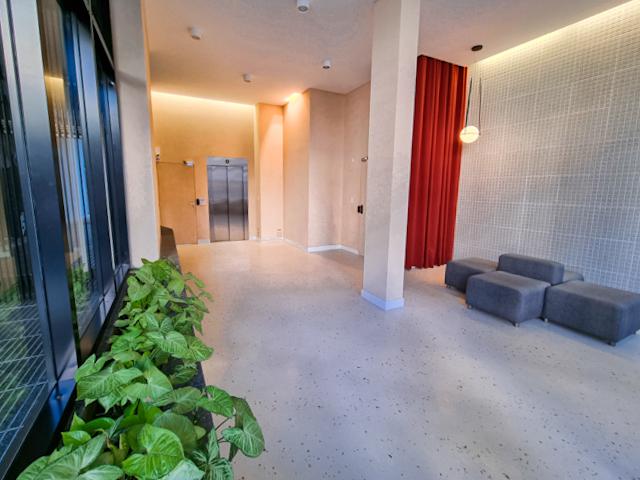 Edificio de nueve plantas, con 22 unidades comprendidas entre los pisos 1º y 8º, en la PB cuenta con 5 unidades de cocheras, azotea con parrillero cubierto y solárium.