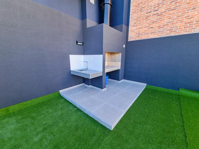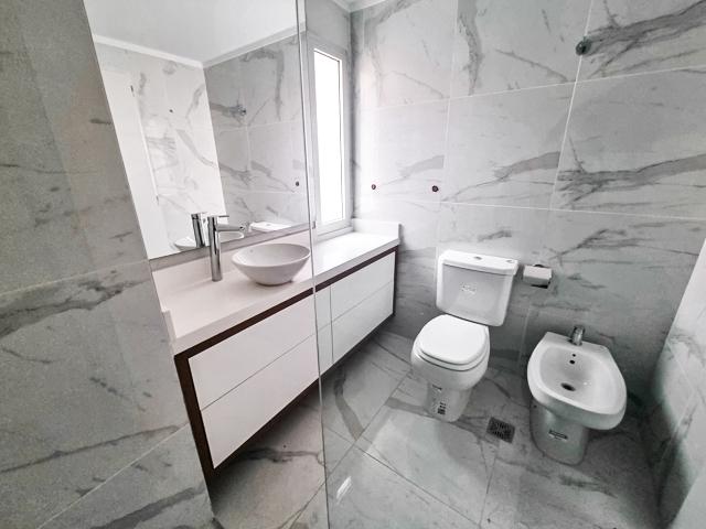 Terminaciones de Categoría: Puerta ingreso blindada con cerradura multipunto, pisos vinílicos, terminaciones en yeso, cortineros, aberturas en aluminio anodizado ALUAR, vidrios DVH, pre-instalación para aires acondicionados Split, mesadas en Purastone, bacha cocina Jhonson, Anafe Gas, Horno de Empotrar grifería baño FV, mueble baño frente laqueado blanco, lavadero incorporado, placar con frente laqueado blanco, Caldera Dual.