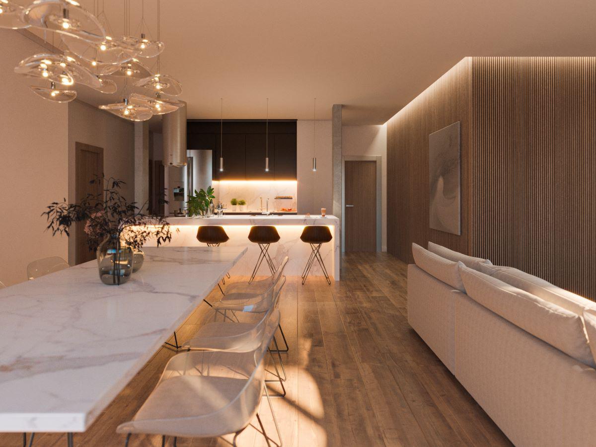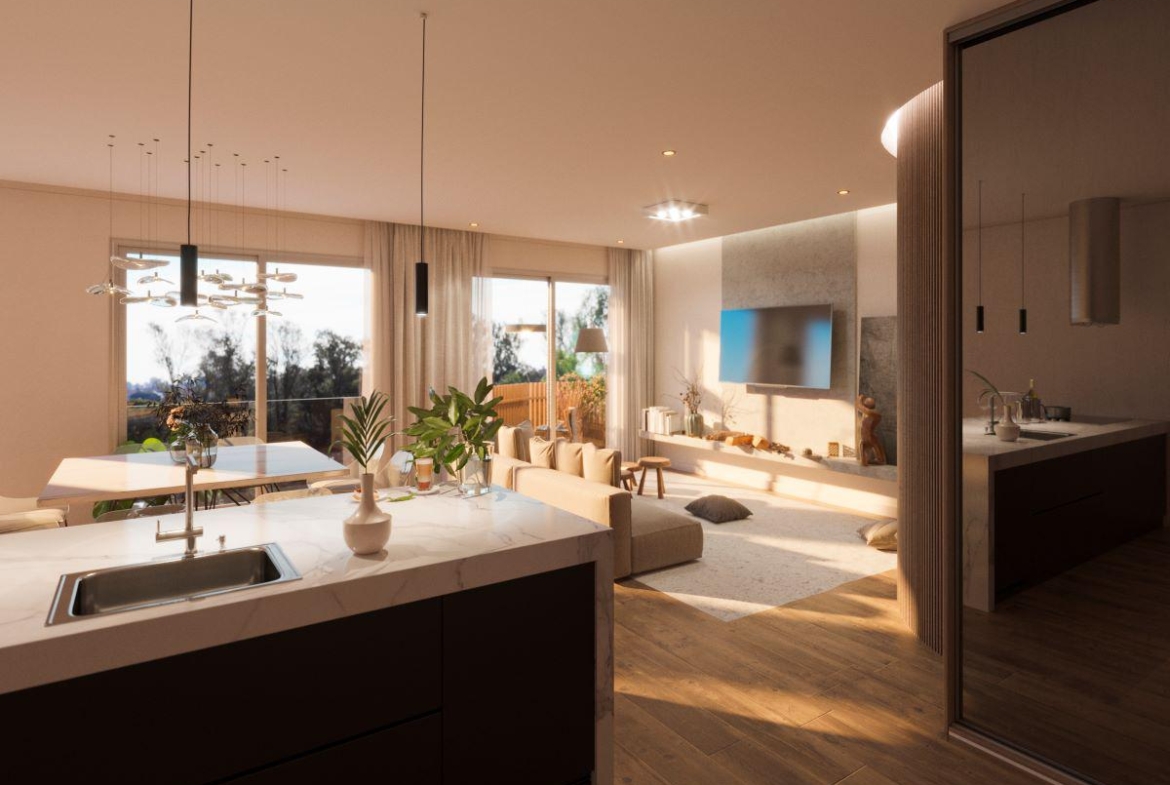 Pisos de Pisos de porcelanato símil madera en interiores. Decks de PVC en exteriores. Equipamiento de cocina completo. Bacha de acero inoxidable y grifería monocomando FV. Anafe y horno para empotrar marca Longvie. Baños completos. Frentes de placares con puertas corredizas en melamina. Paredes y cielorrasos enduídos en yeso. Aberturas exteriores en aluminio aluar anodizado con (dvh) doble vidrio. Caldera y radiadores. Pre instalación de Aires Acondicionado.