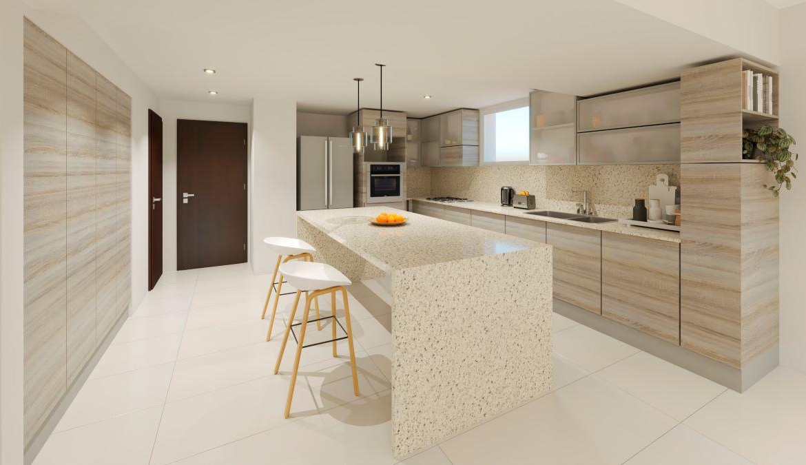 Terminaciones: puertas de seguridad metálicas reforzadas en el ingreso a todos los departamentos. Pared doble con cámara de aire. Aberturas de aluminio con doble vidrio hermetico (dvh). Muebles de cocina, baño y placares totalmente terminados marca zurchsmitten línea premium o similar. Cocinas, hornos y anafes marca longvie o similar. Caldera dual con radiadores. Griferías fv. Piletas de acero jhonson acero. Porcelanatos cerro negro o similar.