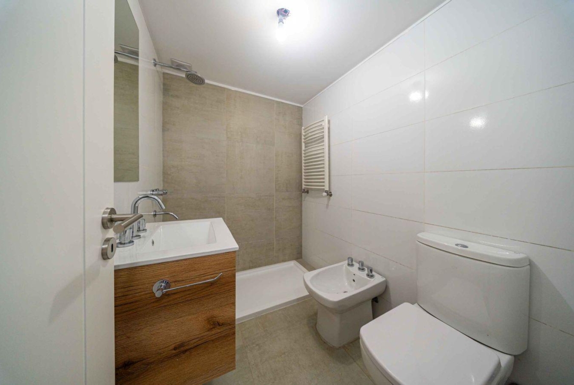 Departamento semipiso de 2 dormitorios al contrafrente de 97.6 m2 con balcón corrido. Orientación Norte. Amplio living comedor. Cocina semiseparada. Dormitorio principal en suite con vestidor. Otro dormitorio con placard. Baño completo. Lavadero.