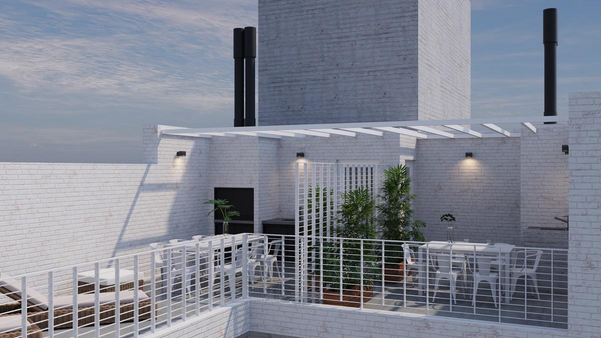 Cuenta con 6 pisos. Entrega Febrero 2027. Dos unidades de 1 Dormitorio y un Loft por planta. En Azotea parrillero con pérgola, piscina y solárium. Terrazas Propias y Unidades con Patio. Cocheras en Planta Baja.