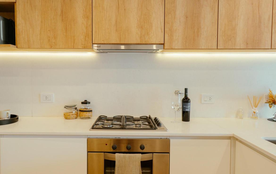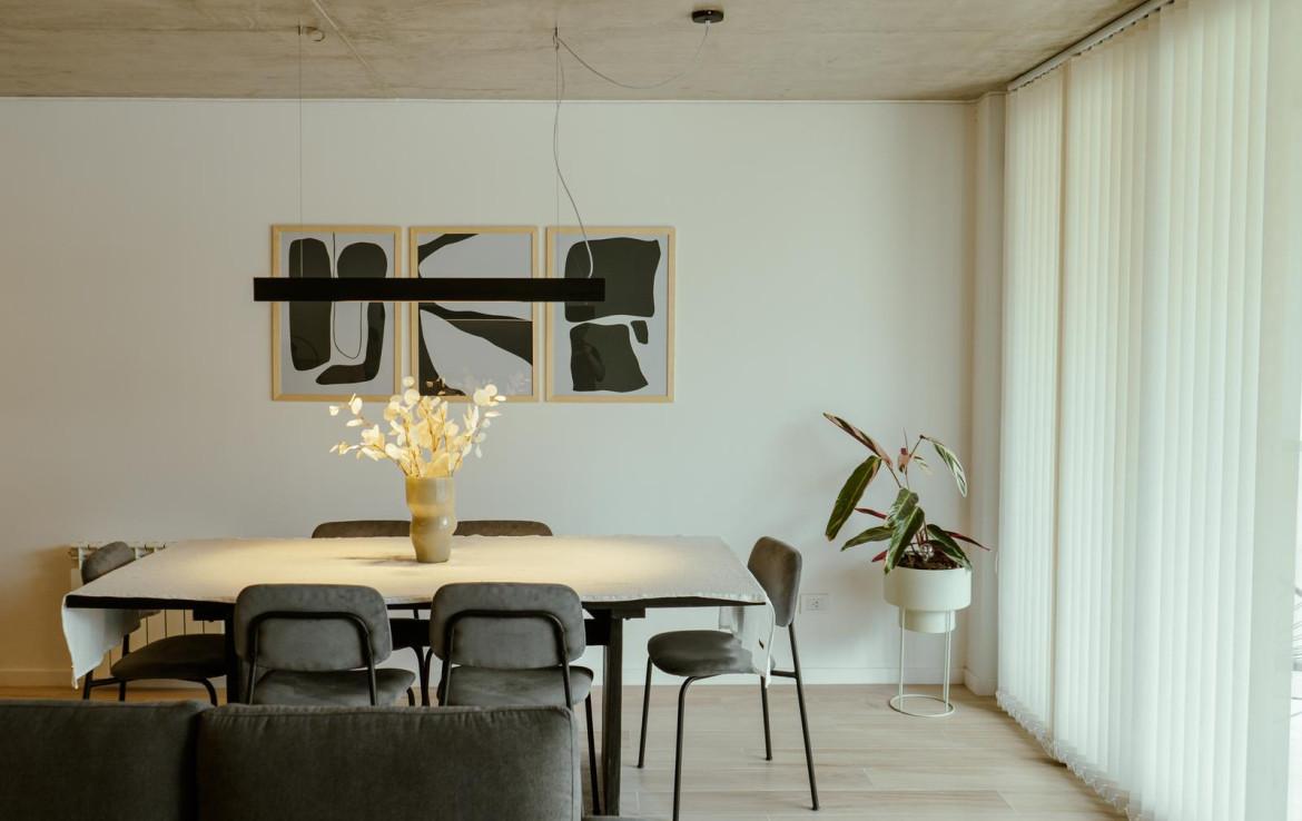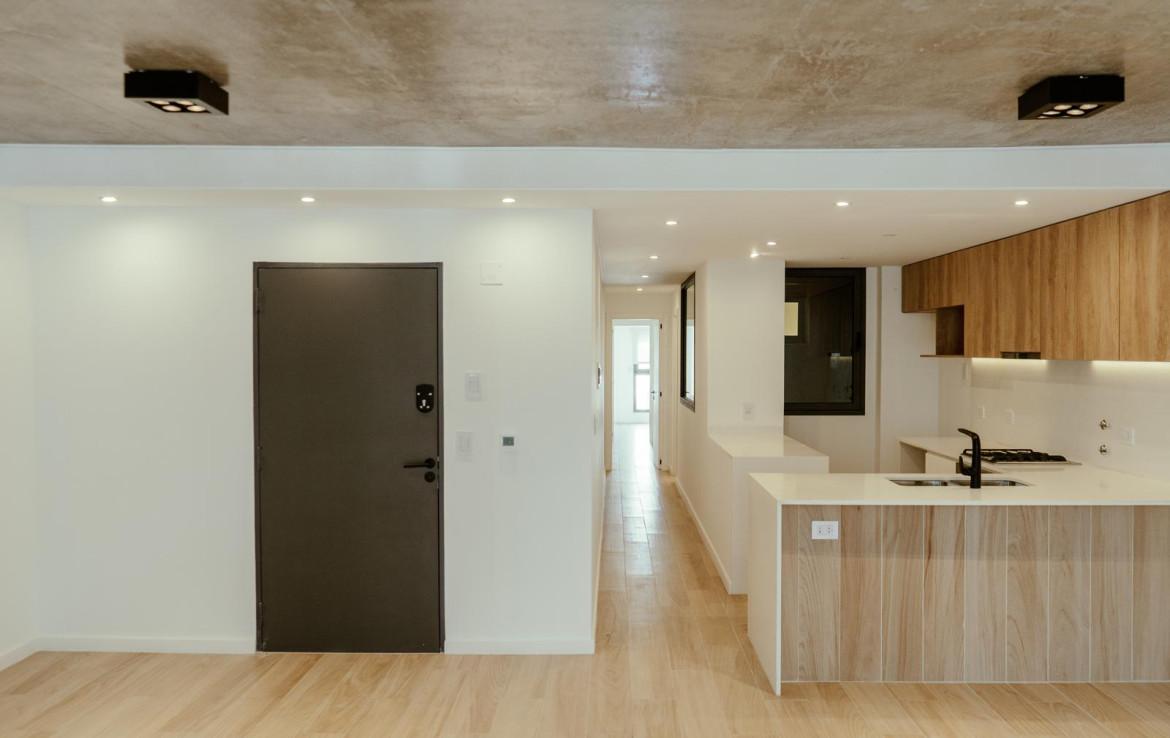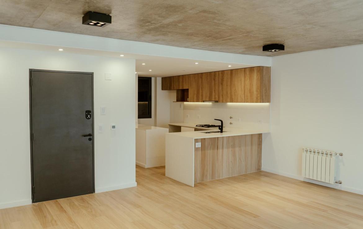Terminaciones: Hall de ingreso con control de acceso y sistema de videovigilancia. Ascensor de ultima generación. Pre- Instalación de grupo electrógeno para espacios comunes Puertas blindadas de ingreso. Pisos de porcelanatos en balcones y baños. Cocina con mesada y alzada de purastone, muebles de bajo mesada con frente y alacena con acabado Nebraska natural. Anafe de 4 hornallas y horno a gas con frente de acero inoxidable. Pileta de acero inoxidable 1º marca. Espacios para extractores semiocultos. Placares con interiores terminados y puerta corrediza con espejo. Abertura de aluminio color con cortinas de enrollar en dormitorios. Aberturas de aluminio con color con vidrio DVH. Balcones con vidrios laminados de seguridad. Paredes enduida en yeso con buña perimetral. Pre instalación ara aires acondicionados Split. Pre instalación de cañería de telecomunicaciones. Pre instalación de sistema de alarma. Caldera Caldaia y calefacción por radiadores, radiadores no incluidos