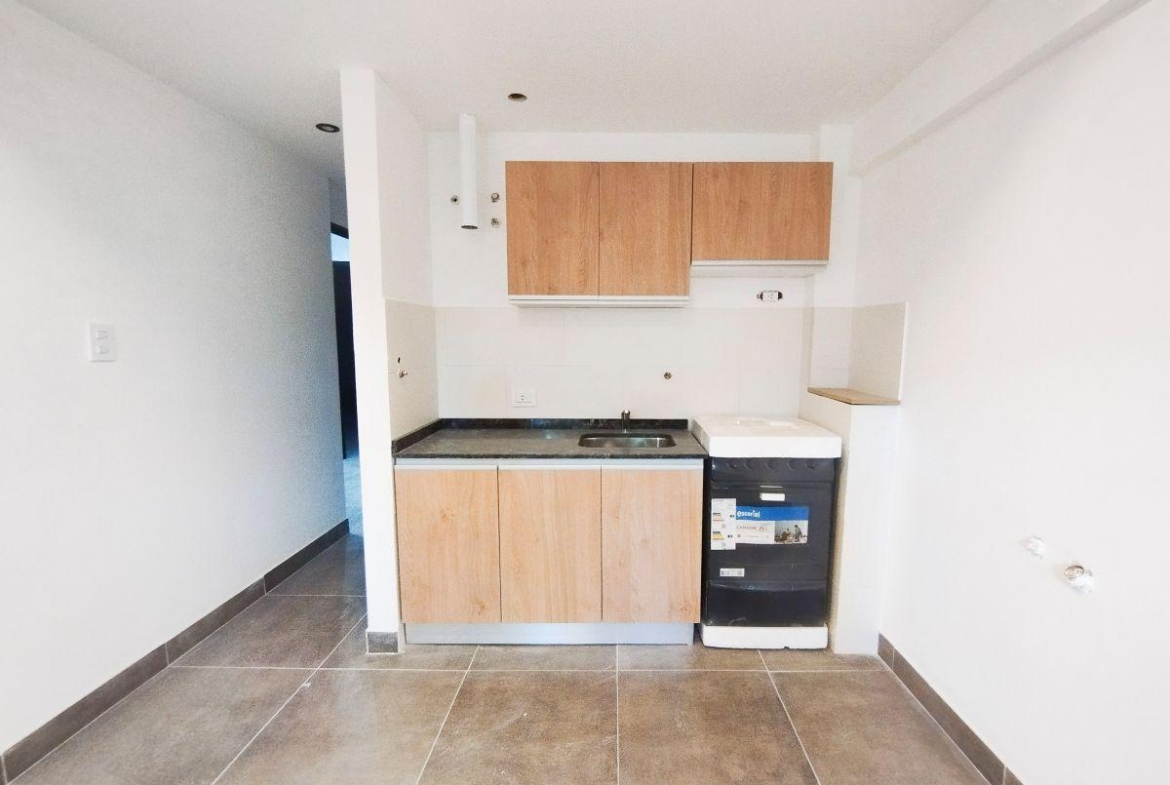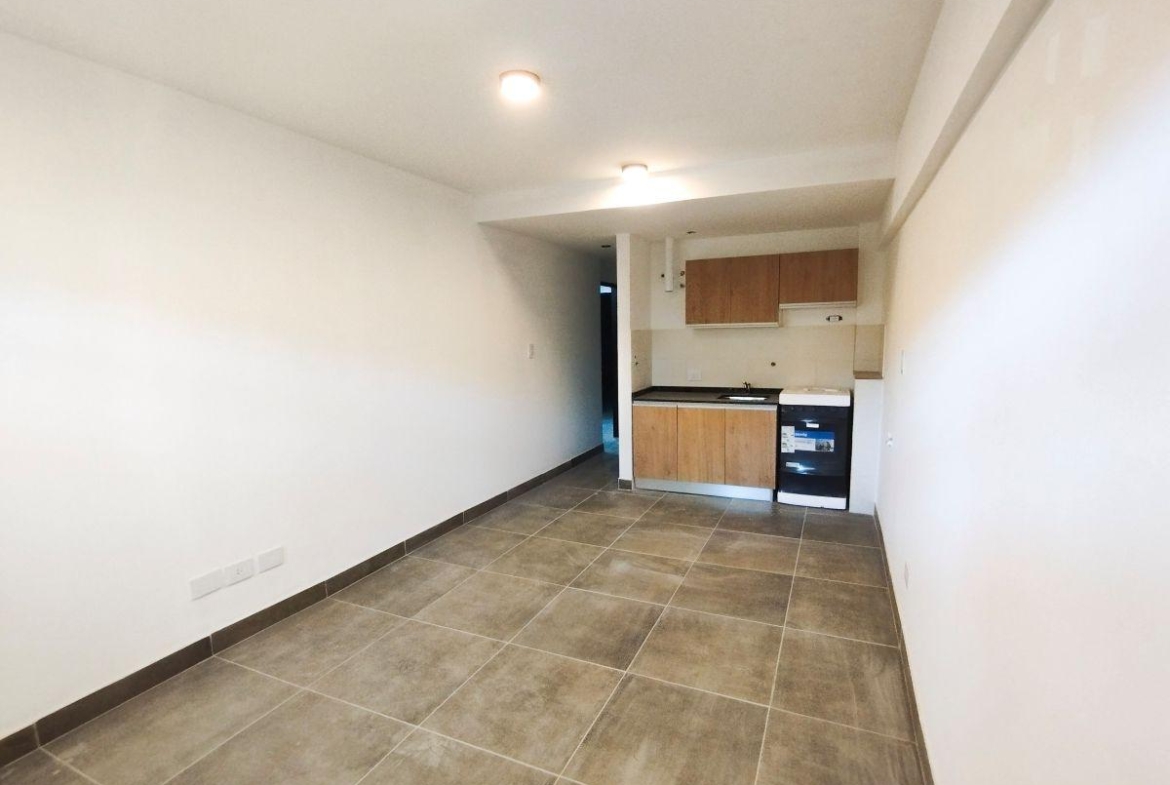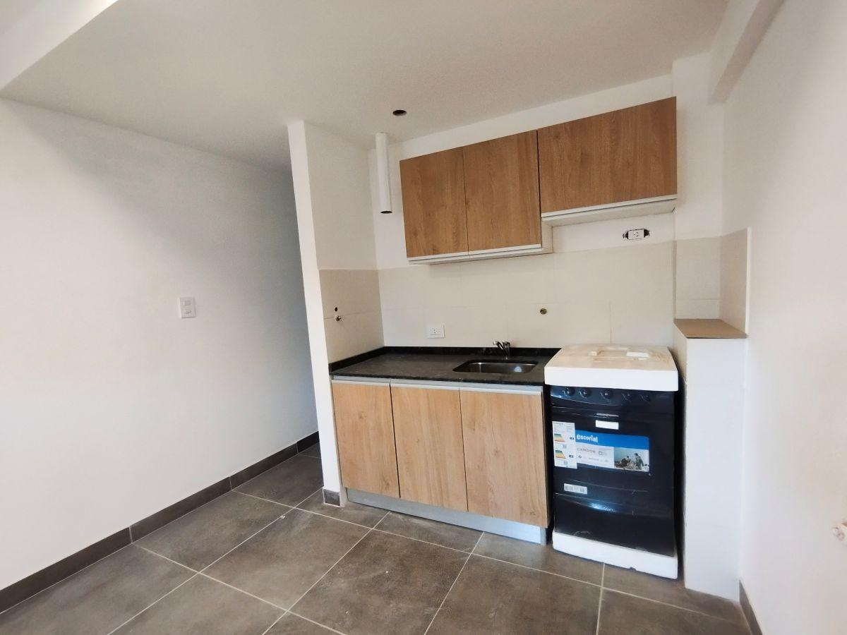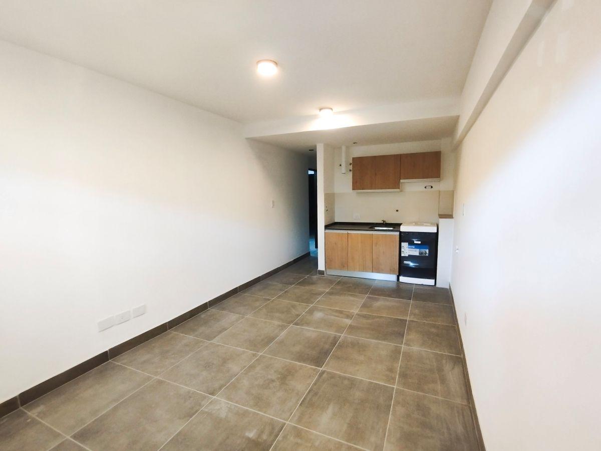 Monoambiente amplio al frente de 32 m2 sin balcón. Amplio ambiente único con cocina integrada totalmente equipada. Baño completo.