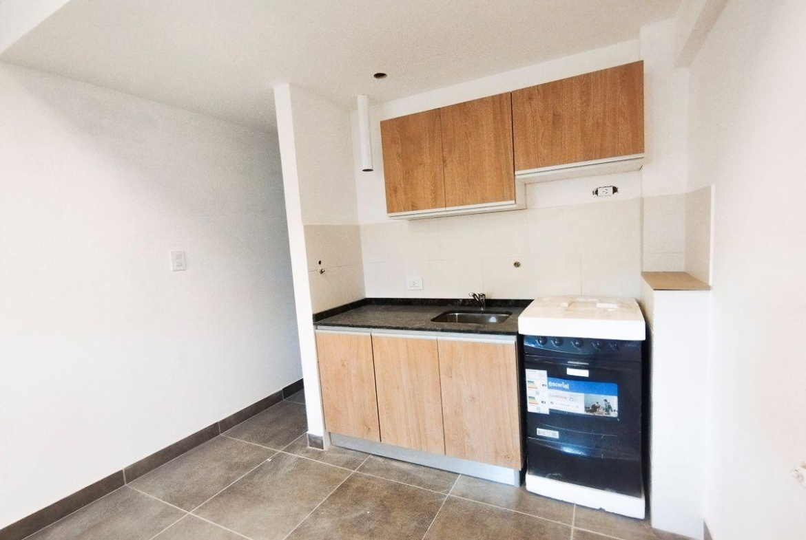 Monoambiente amplio al frente de 35 m2, 32 m2 cubiertos y 3 m2 de balcón. Amplio ambiente único con cocina integrada totalmente equipada. Baño completo