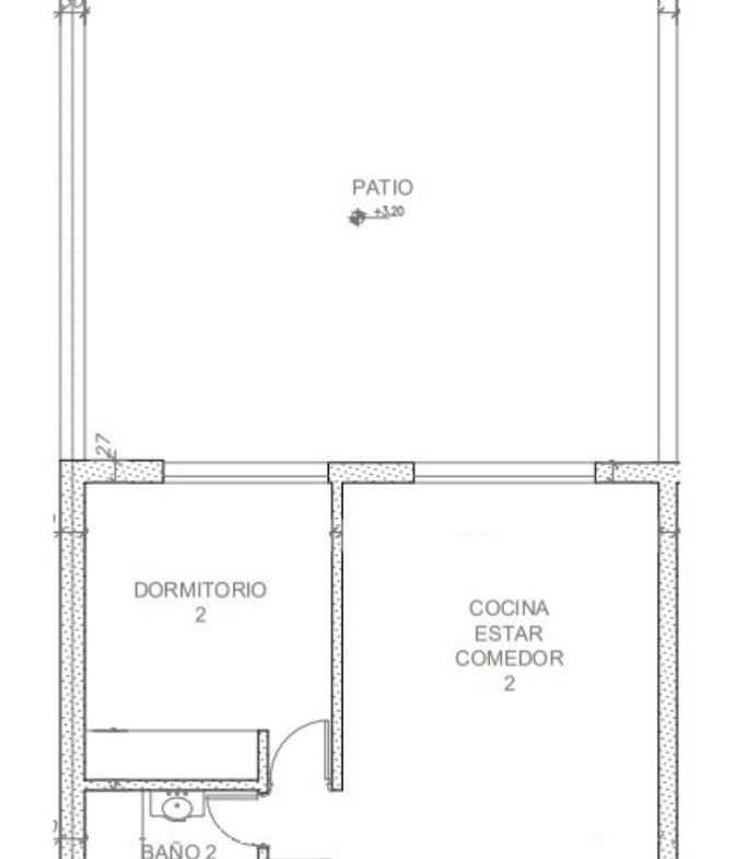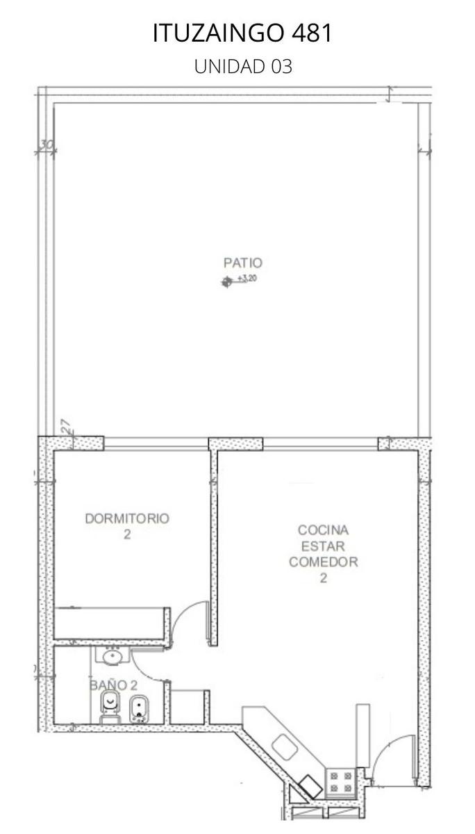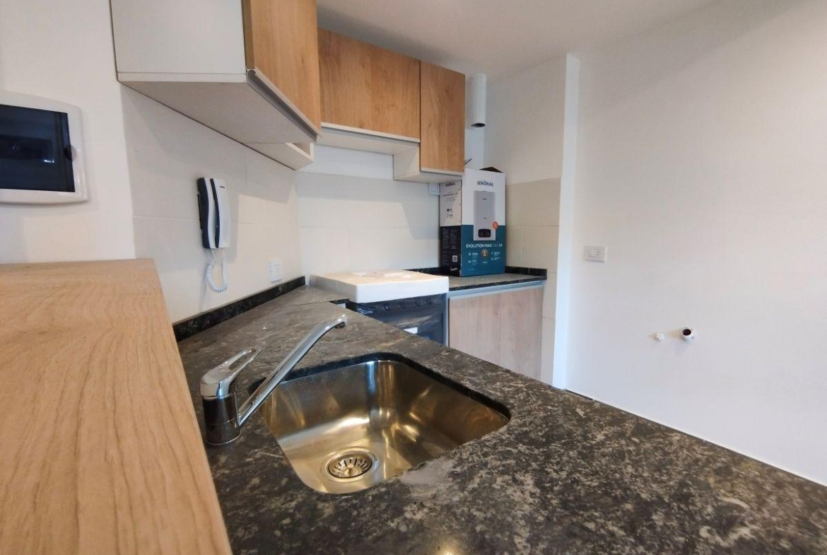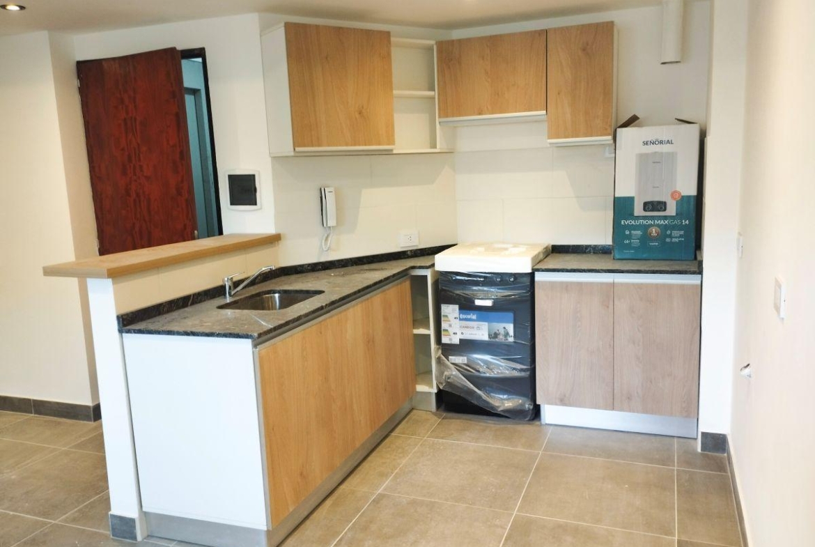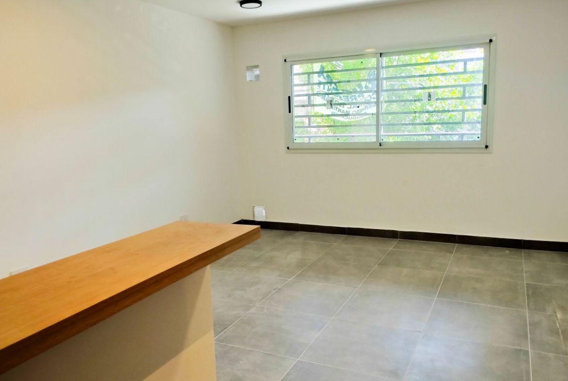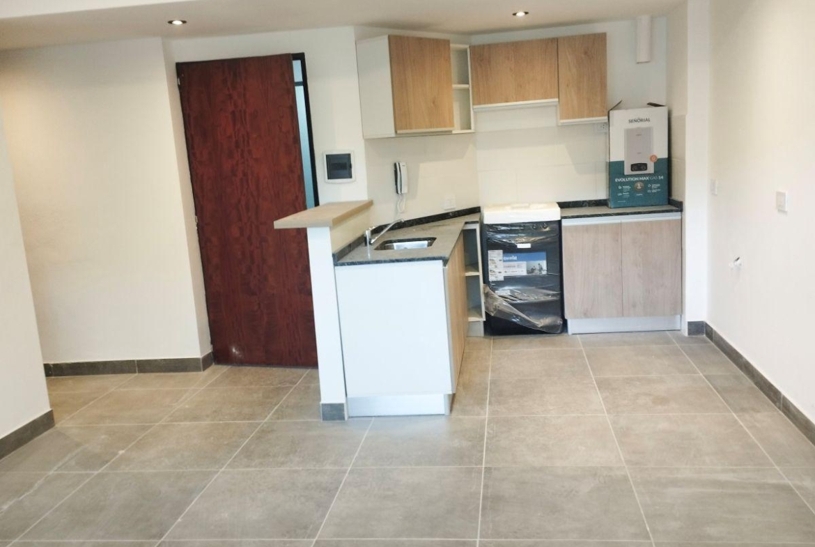 Departamentos de 1 dormitorio contrafrente 96,50 m2, 52 m2 cubiertos y 44,50 m2 de patio. Living comedor con cocina incorporada, salida al patio. Dormitorio con placard. Un baño completo.