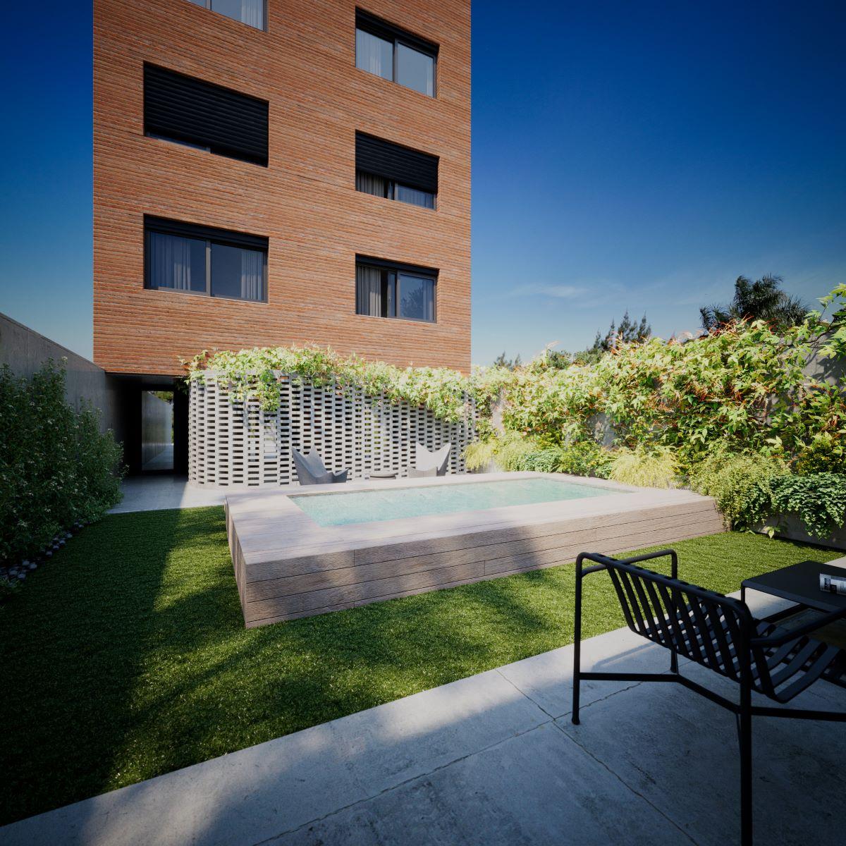 En planta baja cuenta con 6 cocheras y Hall del edificio. Piso exclusivos de 3 dormitorios del 2 al 9 piso y pisos exclusivos de 2 dormitorios 10 al 13. En 1 piso quincho con parrillero, piscina y solárium de uso común.
