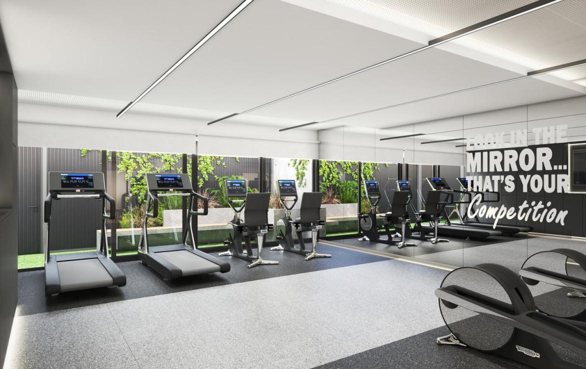 En el primer piso, Hitos brinda un espacio exclusivo que incluye SUM, pileta climatizada, solárium con ducha y gimnasio, para disfrutar de momentos de bienestar.