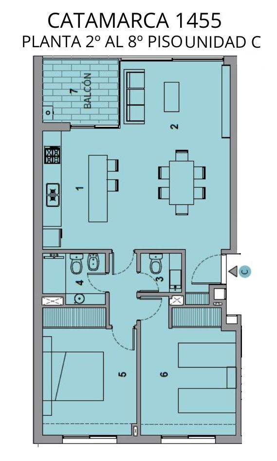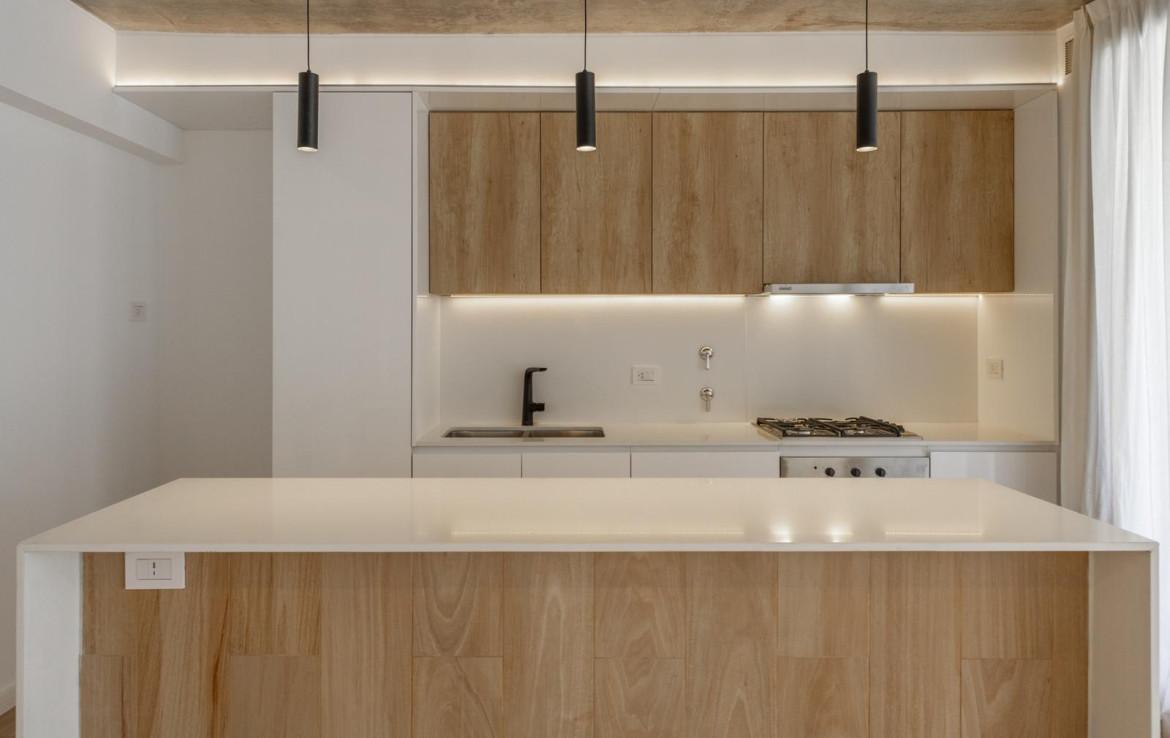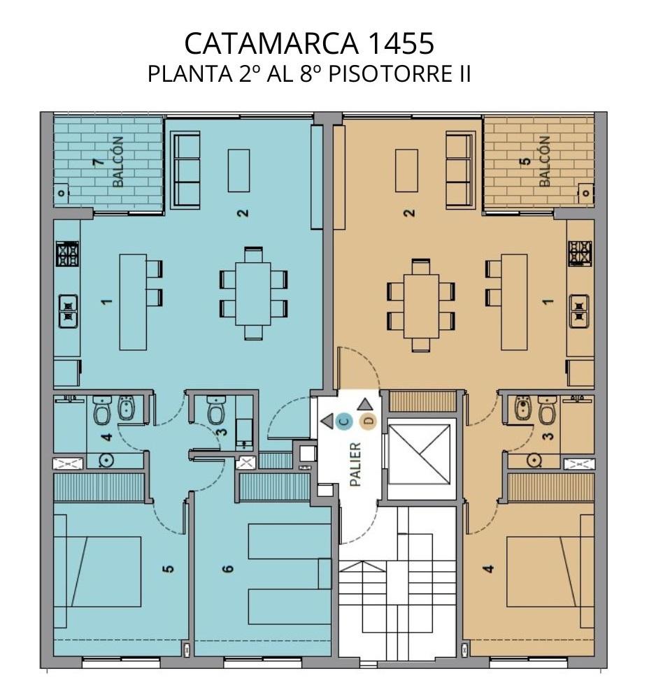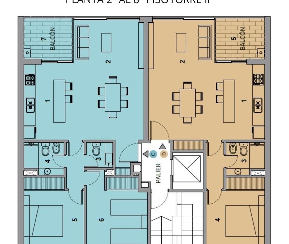 Semipisos de dos dormitorios de 80 m2 con balcón. Living comedor integrado con la cocina con salida al balcón contrafrente orientación norte, un baño completo, una toilette, Dormitorios con placares completos.