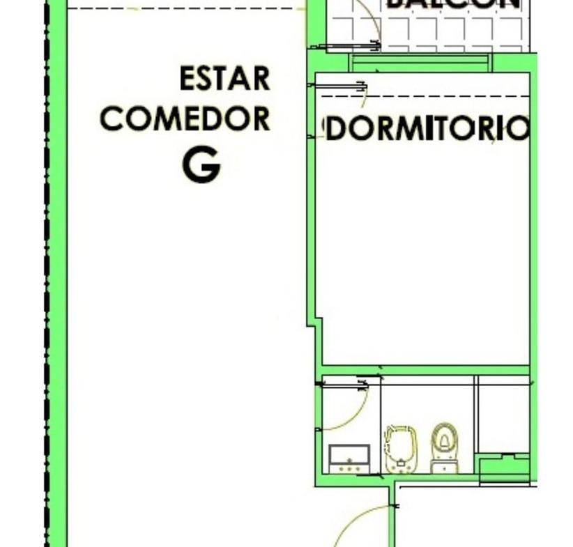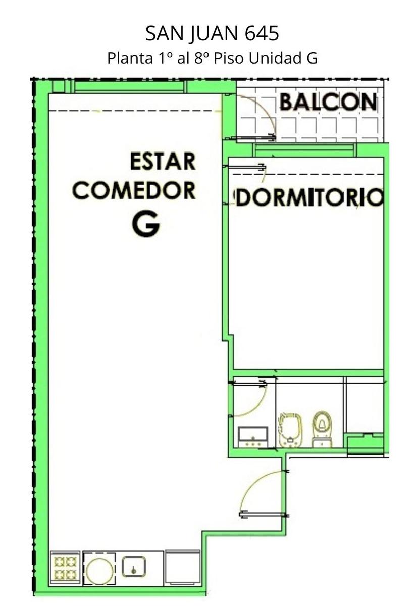Departamentos G de 1 dormitorio Contrafrentes miran hacia el centro de Manzana de 48.80 m2. 45.89 m2 exclusivos y 2.91 m2 de balcón. Amplio living comedor con salida al balcón. Cocina completa incorporada. Dormitorio con placard. Un baño completo.