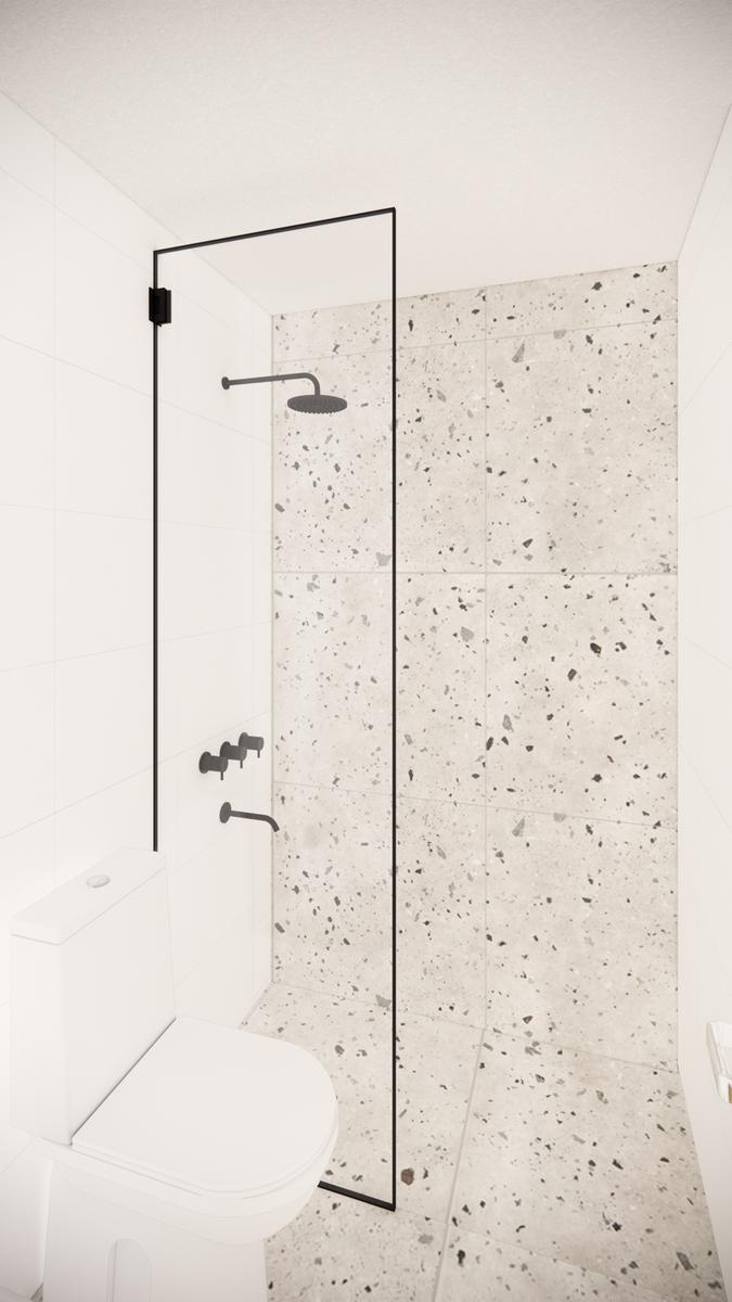 Pisos de porcelanato o madera flotante de primera calidad. Paredes exteriores con certificación higrotérmica de aislación. Interior de paredes enduídas en yeso. Aberturas exteriores en aluminio con doble vidrio. Mesadas de cocina de mármol y bacha de acero inoxidable con grifería fv o similar. Alacenas y bajo mesadas en melamina. Calefón a gas y cocina con horno de primera marca. Baños completos con sanitarios roca o similar. Griferías fv o similar. Persiana y placard en dormitorio. Espacio para colocar aire acondicionado split. Pico de gas en living comedor.