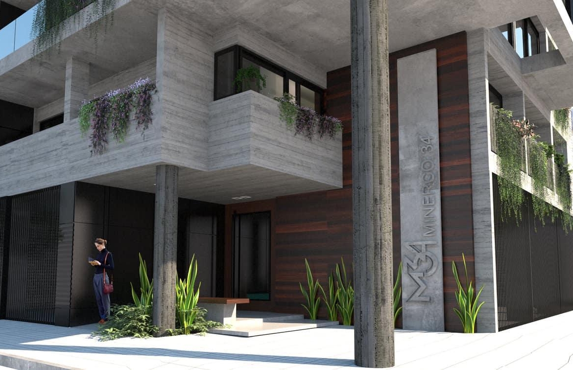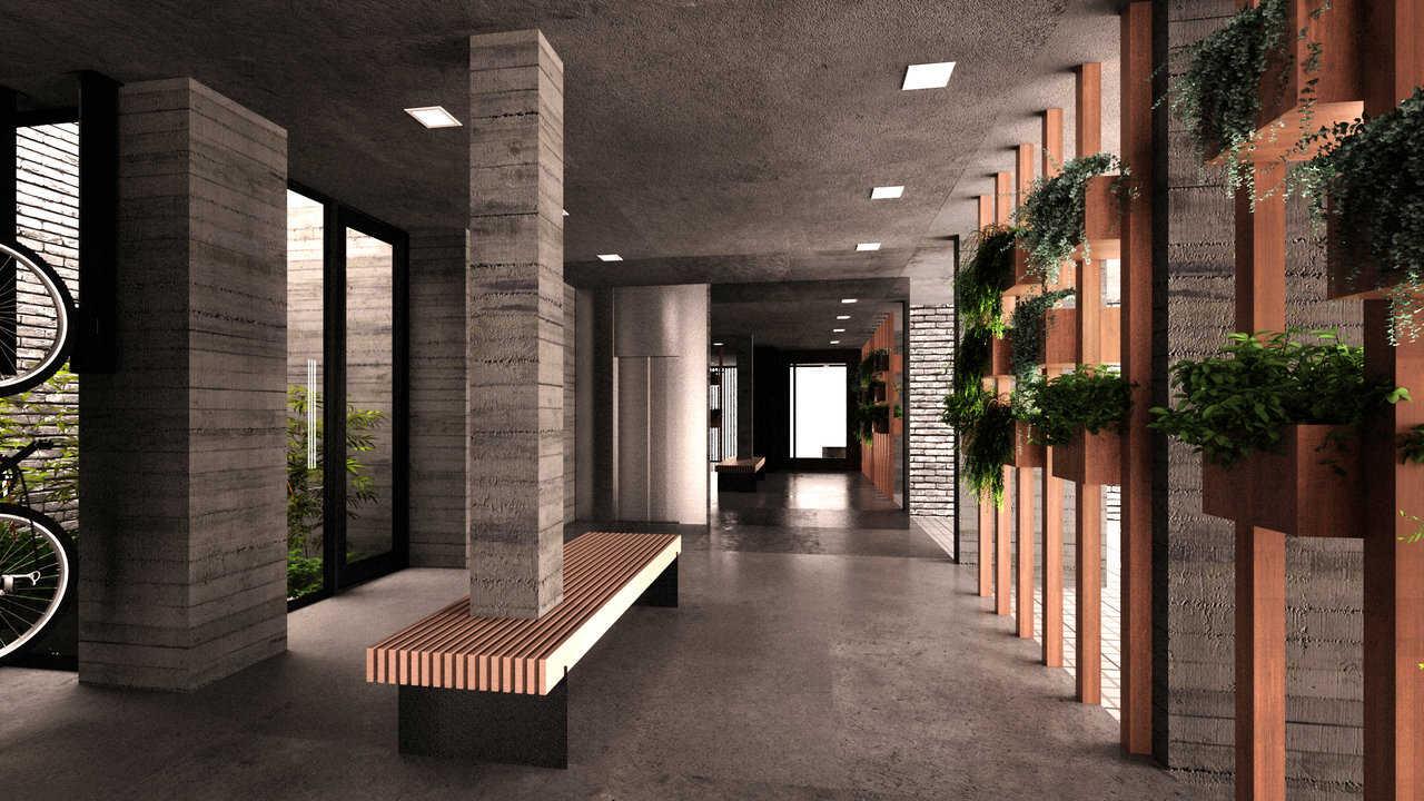 La fachada y el hall de ingreso son refugio de vegetación natural con riego automatizado para su fácil mantenimiento.