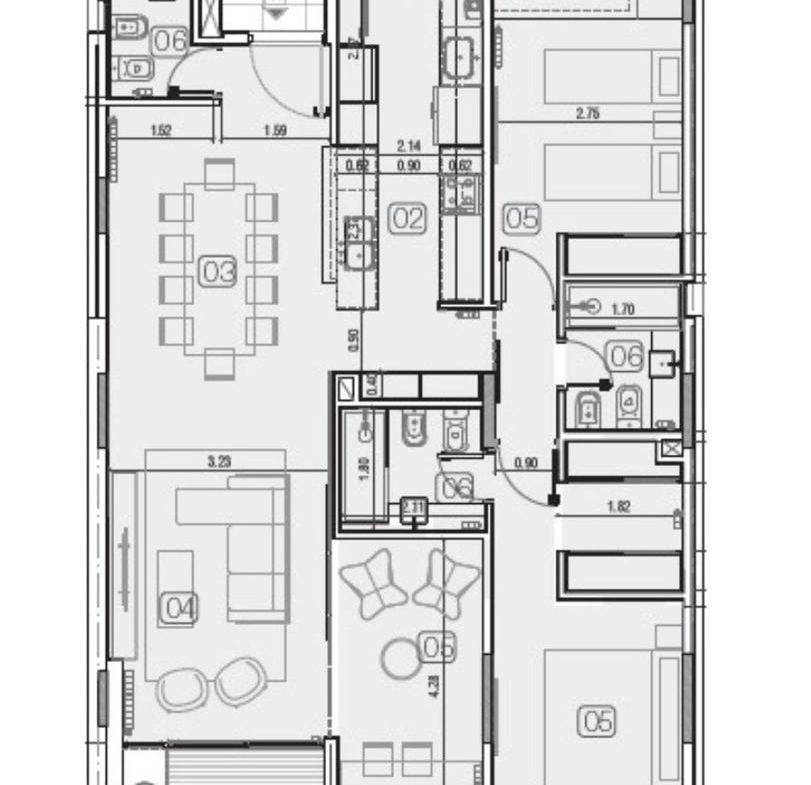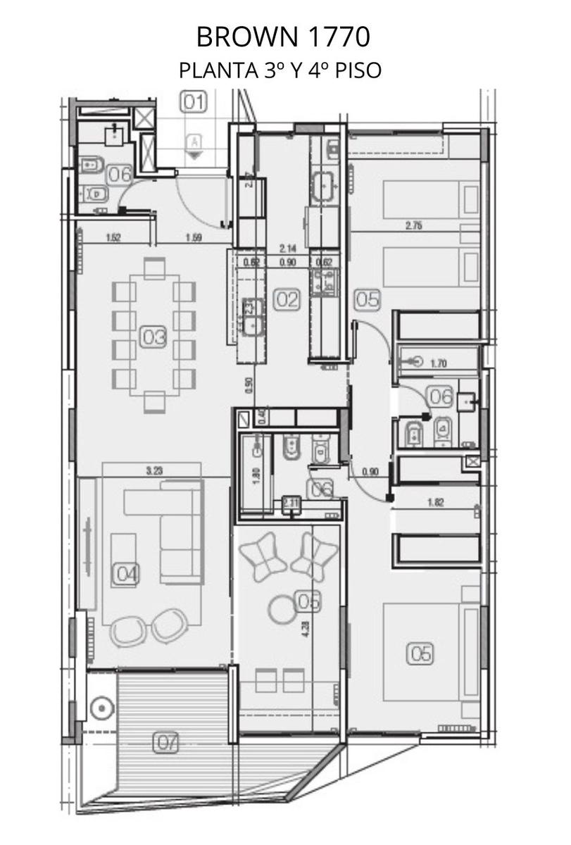 Departamento premium exclusivo de 3 dormitorios de 122.30 m2. 105.25 m2 y 17m2 de balcón. Ventilación cruzada. Ingreso al amplio living comedor con salida a balcón al frente con parrilla. Toilette de recepción, Cocina semiseparda por barra desayunadora. Lavadero. 3 dormitorios. El principal en suite con vestidor. Otro con placard. Otro baño completo.