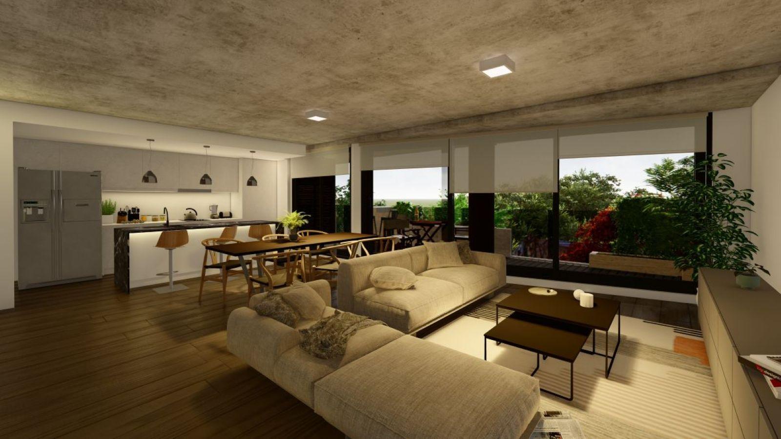 Departamento premium de 2 dormitorios al Contrafrente de 105 m2. 97 m2 cubiertos y 8 m2 de balcón con parrilla. Ventilación cruzada. Ingreso a living comedor, cocina separada por isla y salida al balcón contrafrente. Toilette de recepción. 2 dormitorios el principal en suite con vestidor, otro con placard. Baño completo.