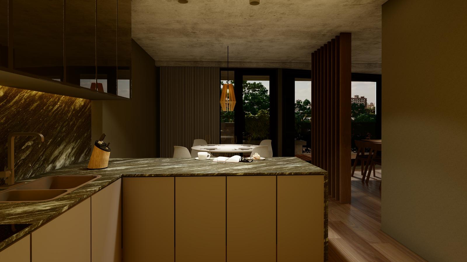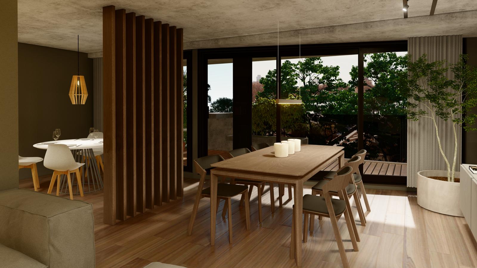 Departamento premium de 3 dormitorios de 160 m2 con jardín. 108 m2 cubiertos y 52 m2 de jardín con Parrillero. Ingreso a living comedor con salida al patio. Toilette de recepción. Cocina semiseparada con barra desayunadora. Escritorio. 3 dormitorios, 2 con vestidor, otro con placard. El principal en suite. Baño completo.