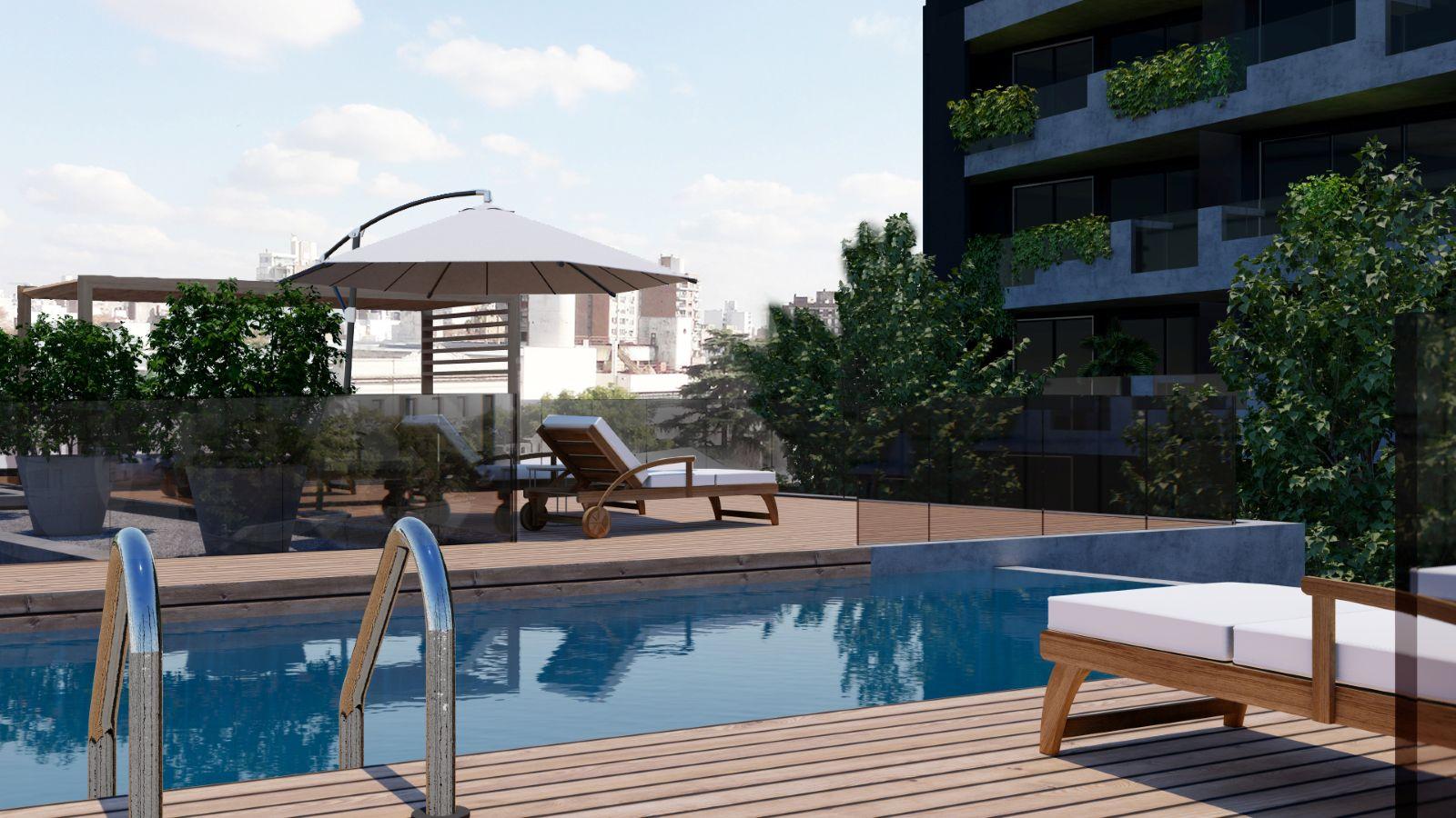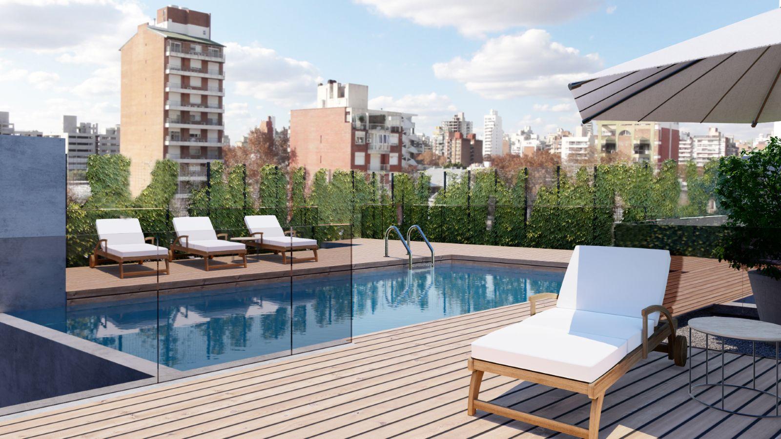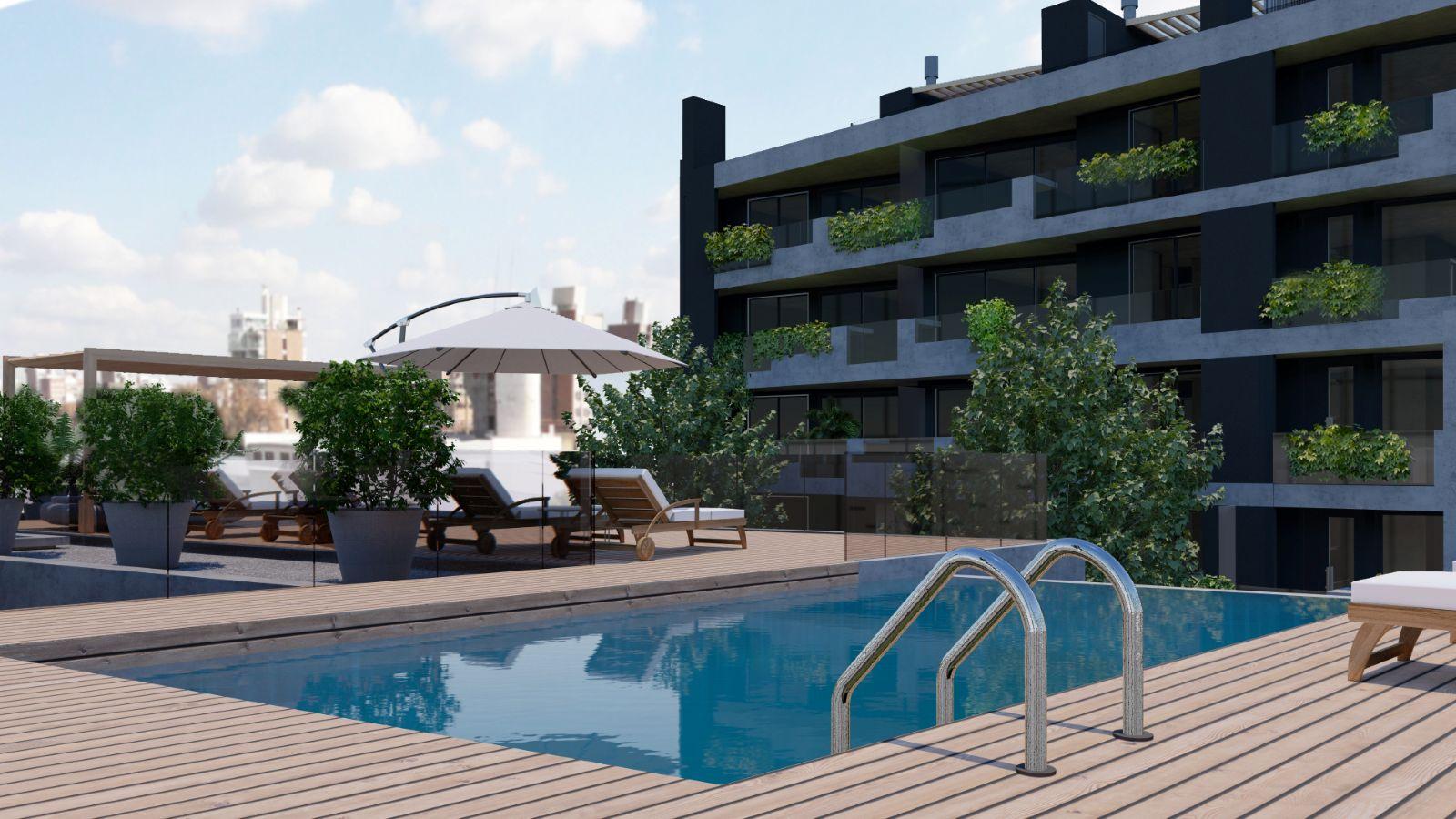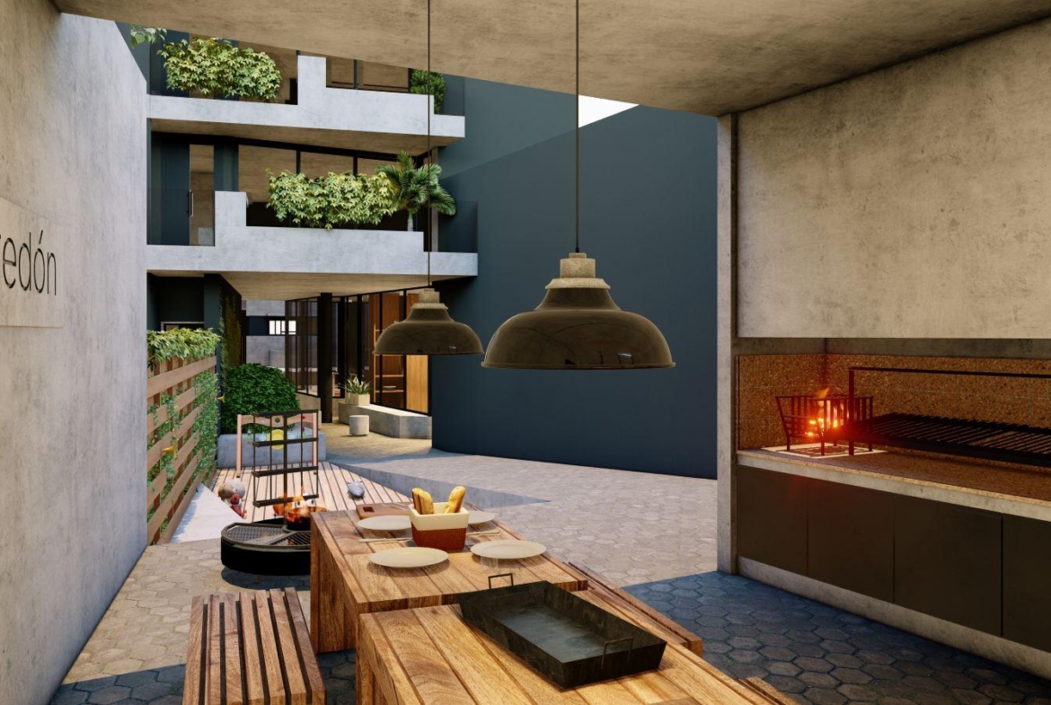 Amenities, Piscina, Solárium, Sum, Patio, Parrilleros exterior e interior, Work space, Sector de juegos para chicos, Gimnasio exterior e interior, Estacionamiento para bicicletas, Lockers.