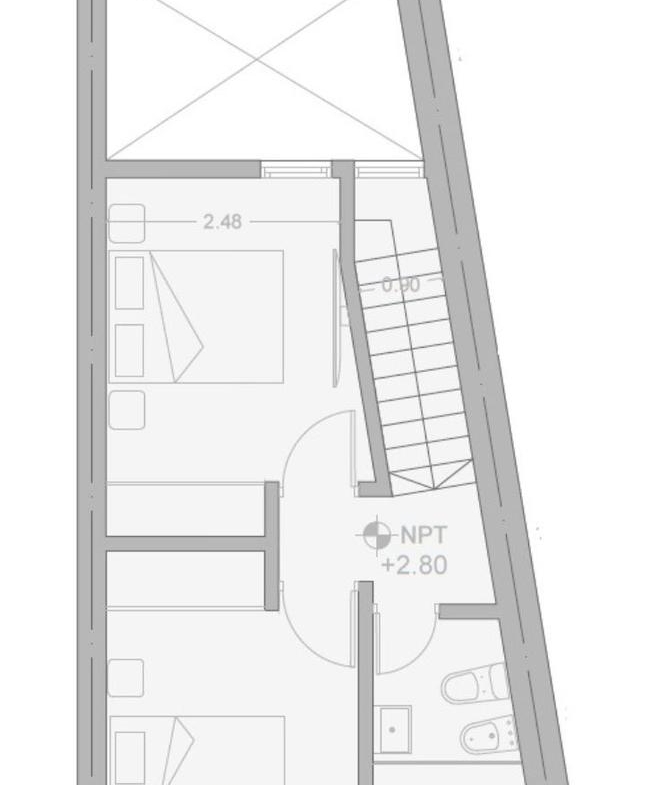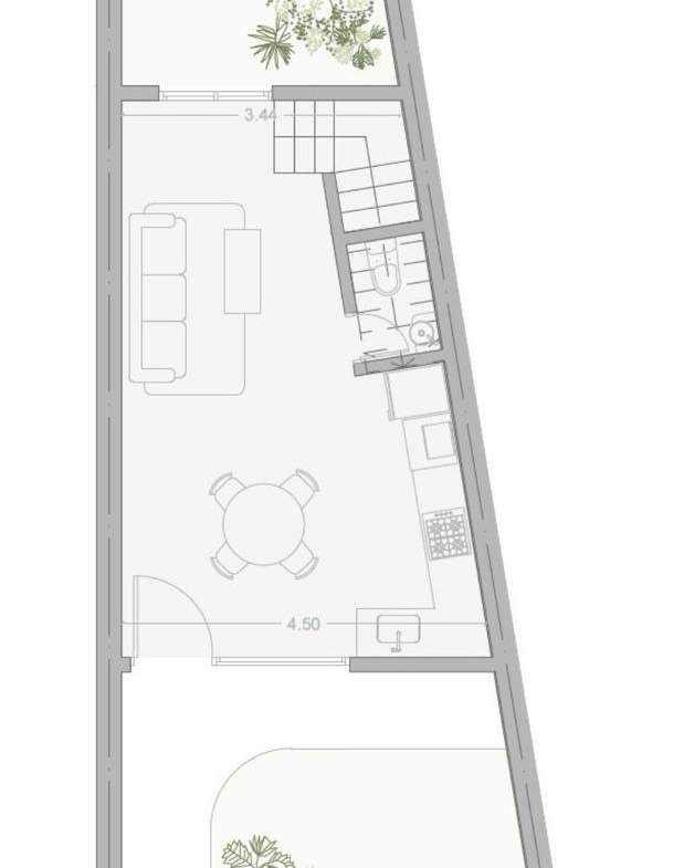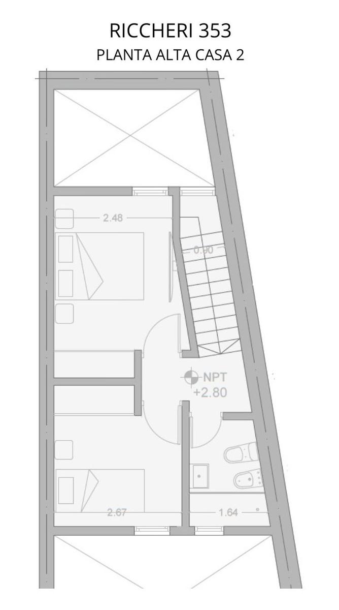 Casa de 2 dormitorios interna, desarrollada al final del terreno de 88,10 m2, 62,06 cubiertos y 25,50 m2 de patio propio. En planta baja cocina incorporada al estar con toilette y patio. En planta alta baño completo y 2 dormitorios con placares.