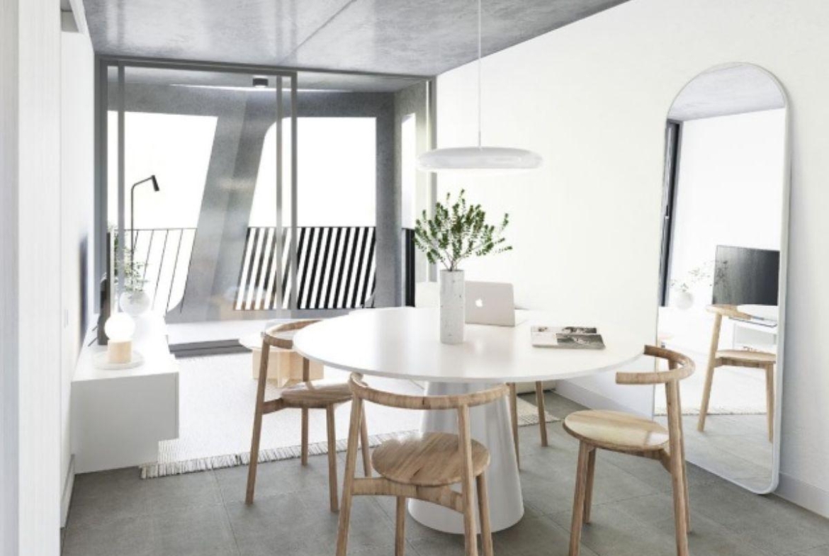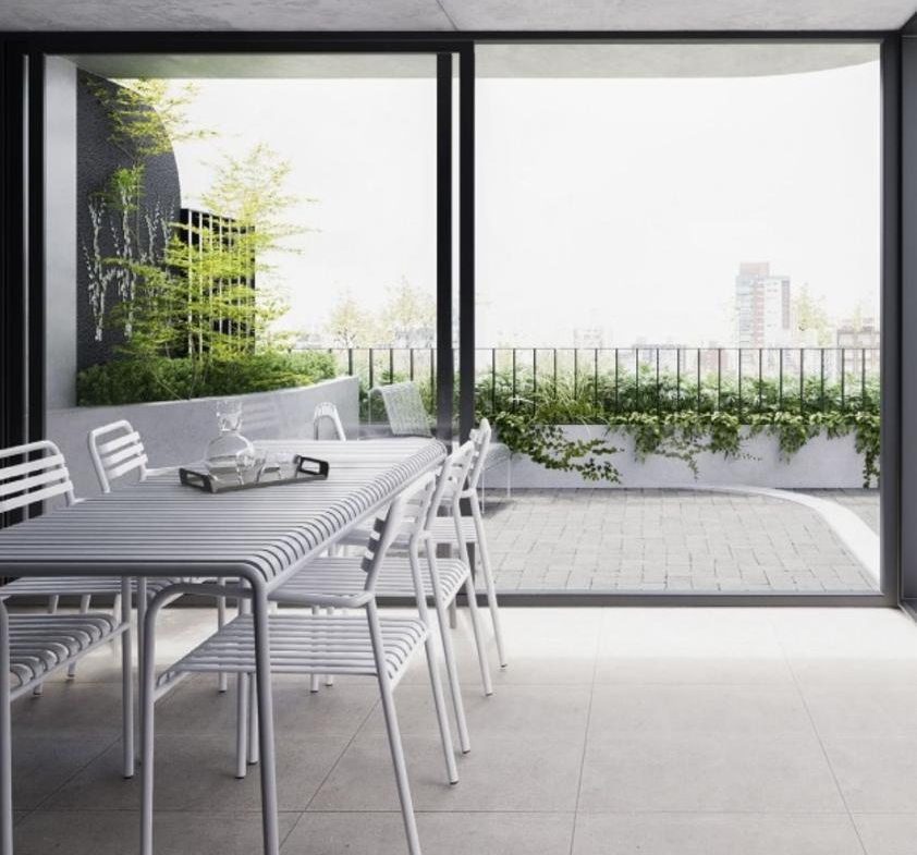 En el corazón del edificio, un patio central genera un flujo constante de luz y aire, aportando bienestar a cada unidad y destacando la importancia de la calidad ambiental en el diseño. Los palieres abiertos y las visuales despejadas completan esta propuesta, integrando de manera armónica la arquitectura con su entorno.