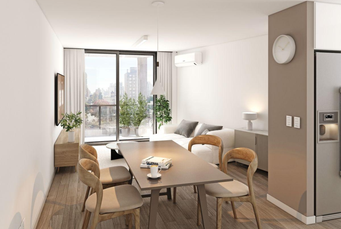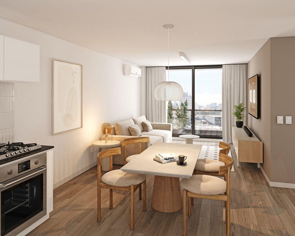 Este proyecto ofrece una excelente oportunidad para inversores y usuarios finales, con unidades funcionales y cómodas, y un local comercial en planta baja que potenciará la dinámica del edificio. Edificio de Planta Baja y 6 pisos, Terraza con amenities. Local comercial en PB. Unidades de 1 dormitorio. Orientación frente Este, con excelente luminosidad natural. Amenities en terraza: SUM, parrillero, piscina, solárium y terraza de uso común. Espacio para bicicletero.