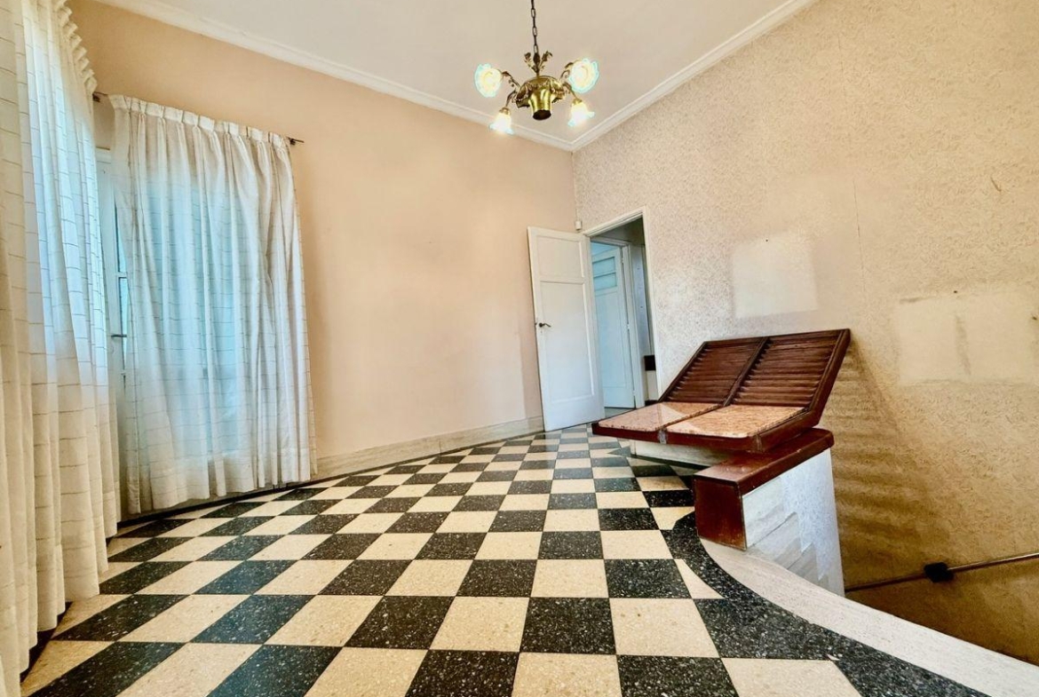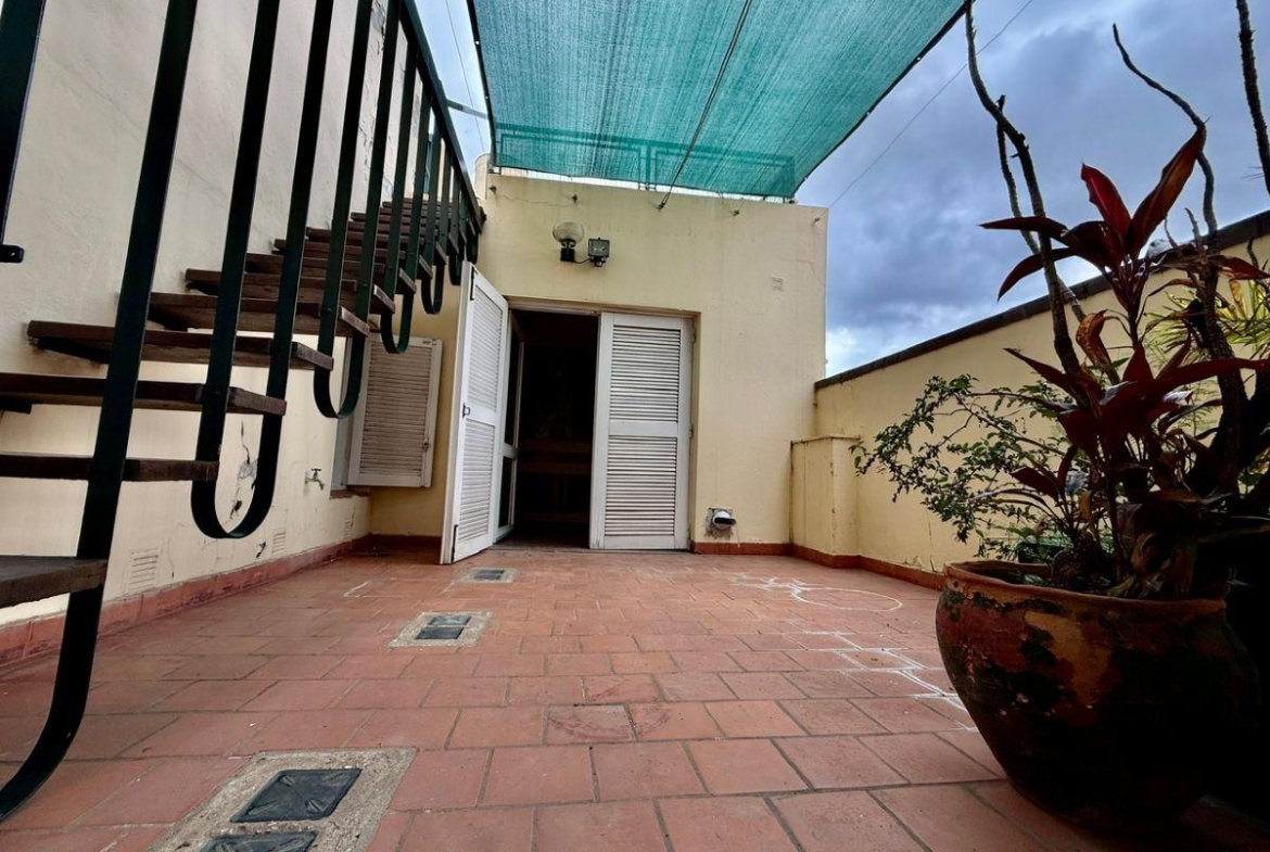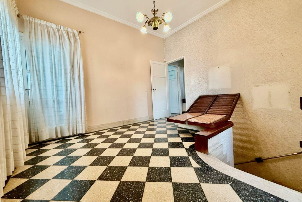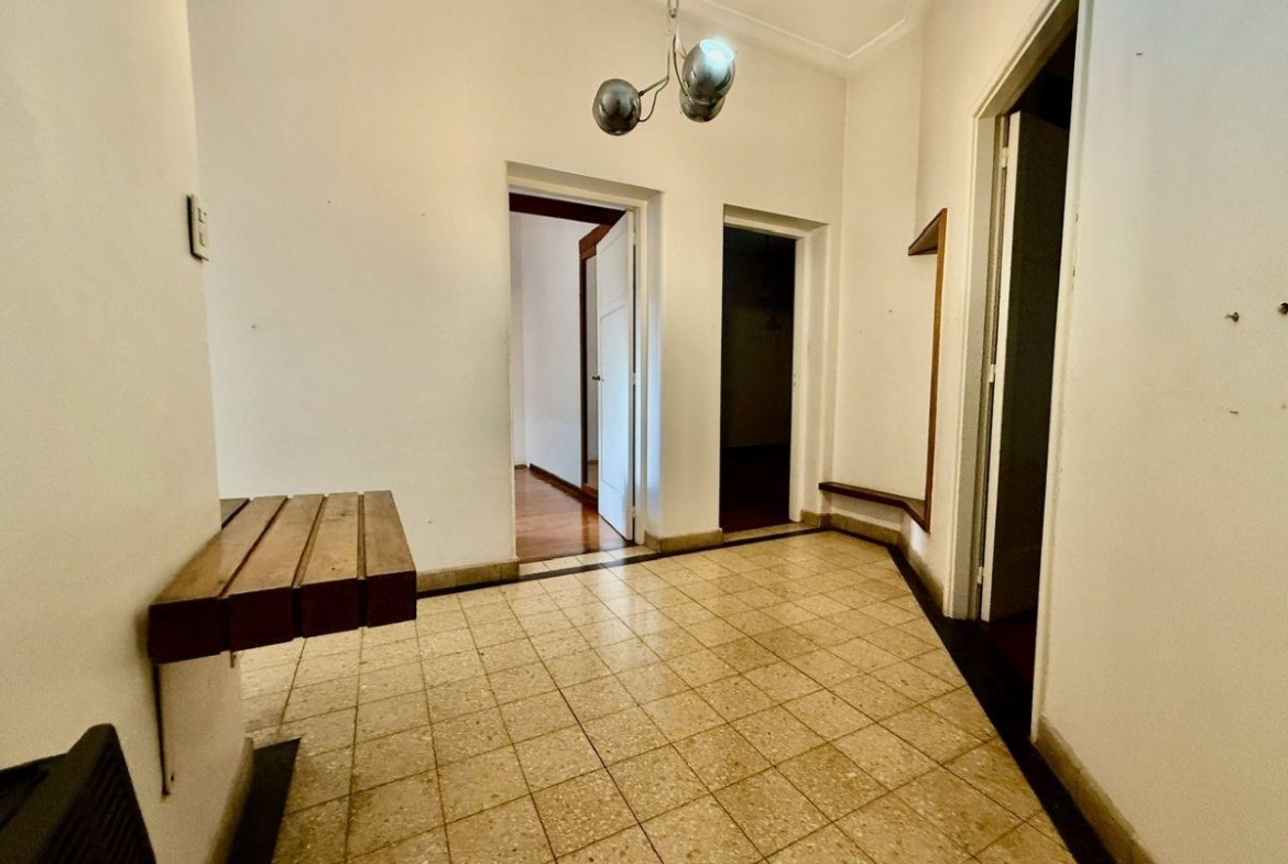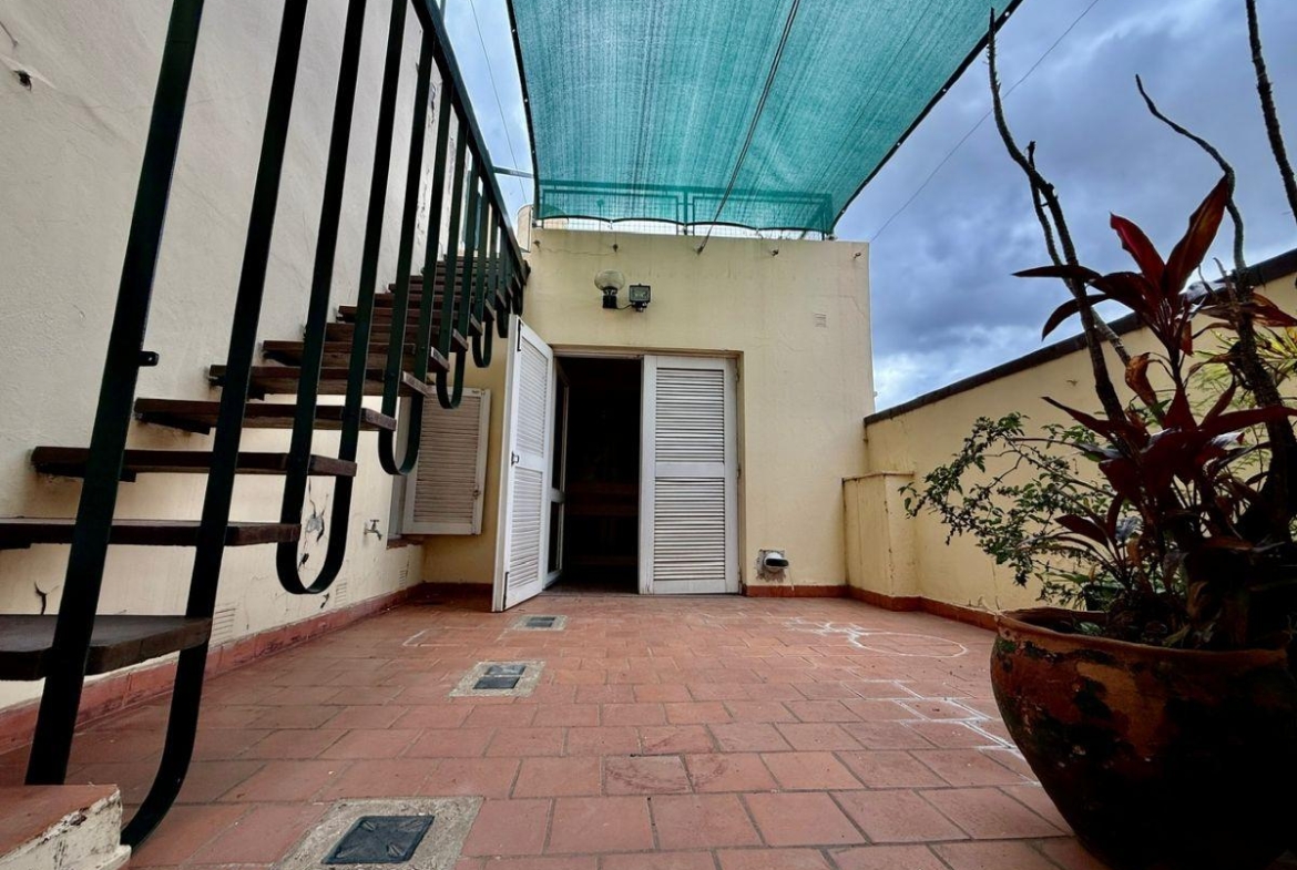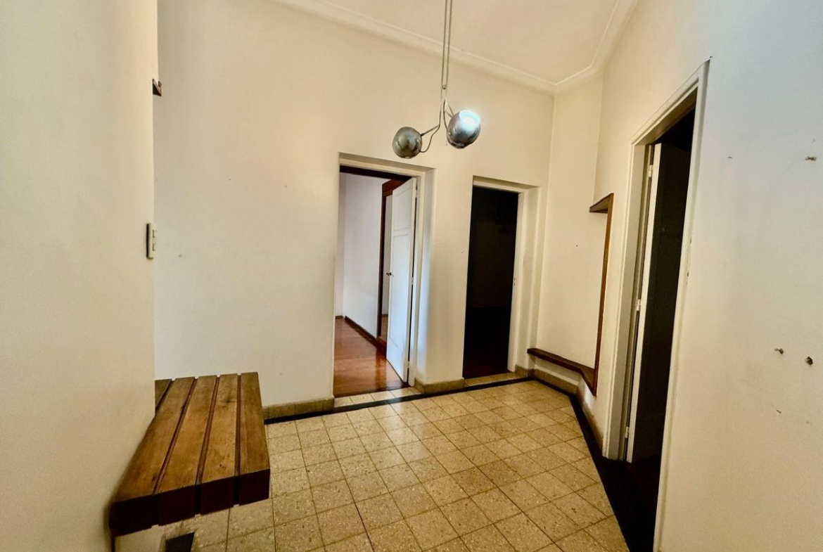 Casa de 4 dormitorios con terraza y quincho con parrilla ubicada en la esquina de San Martin y La paz desarrollada íntegramente en planta alta. Antiguedad 40 años. Muy buen estado general.