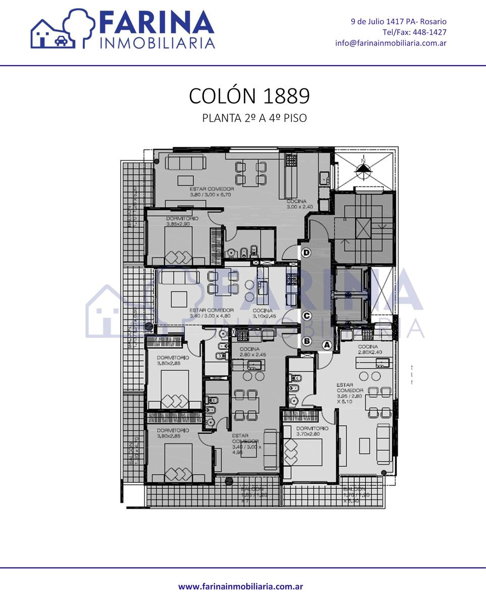 UNIDAD 1 DORMITORIO “B” DE 57.50 M2 EXCL. ( 47.5 M 2 + 10 M2 BALCON) (CALLE PASO) COCINA SEMISEPARADA POR BARRA DESAYUNADORA. DORMITORIO CON SALIDA A BALCON AL FRENTE (CALLE COLON) CON PLACARD. BAÑO COMPLETO CON BAÑERA.