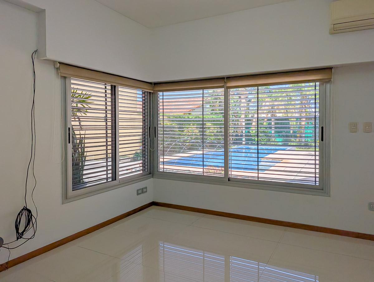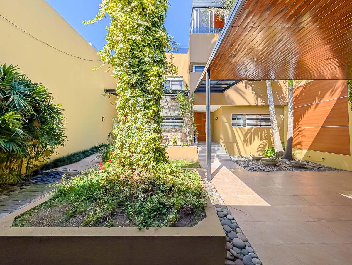 Desarrollada en tres plantas, 4 dormitorios todos en suite. Pb: Living comedor, cocina comedor diario totalmente equipada, escritorio, toilette, lavadero independiente, galería con parrilla, jardín con piscina, baño auxiliar, cochera para 6 autos. Planta alta: 4 dormitorios todos en suite, Principal con vestidor. Escritorio, playroom y balcón con vistas al jardín. Tercera planta: gym, sum y terraza con quincho cubierto.
