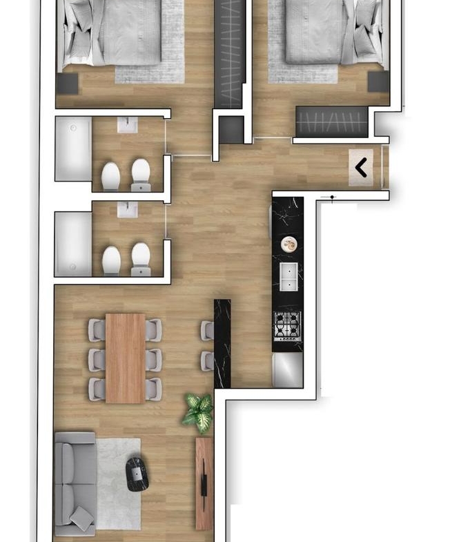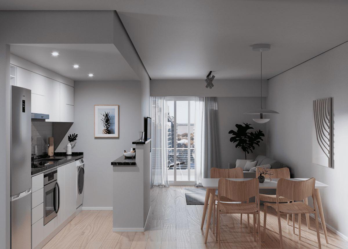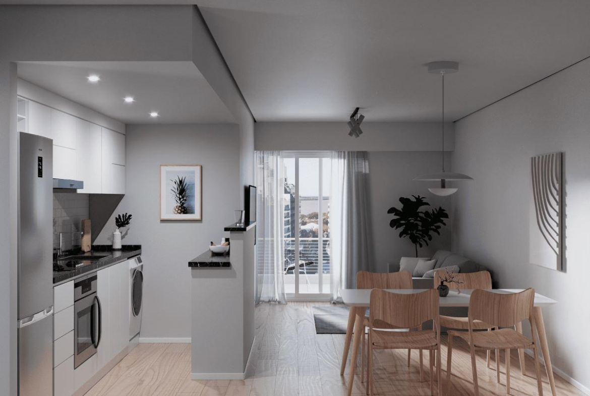 Departamentos de 2 dormitorios al frente este sobre calle Mitre de 69 m2.63,50 m2 cubiertos y 5,50 m2 de balcón. Ventilación cruzada. Cocina equipada semi separada por barra del living comedor. Dormitorios con placard el principal en suite. Otro baño completo.