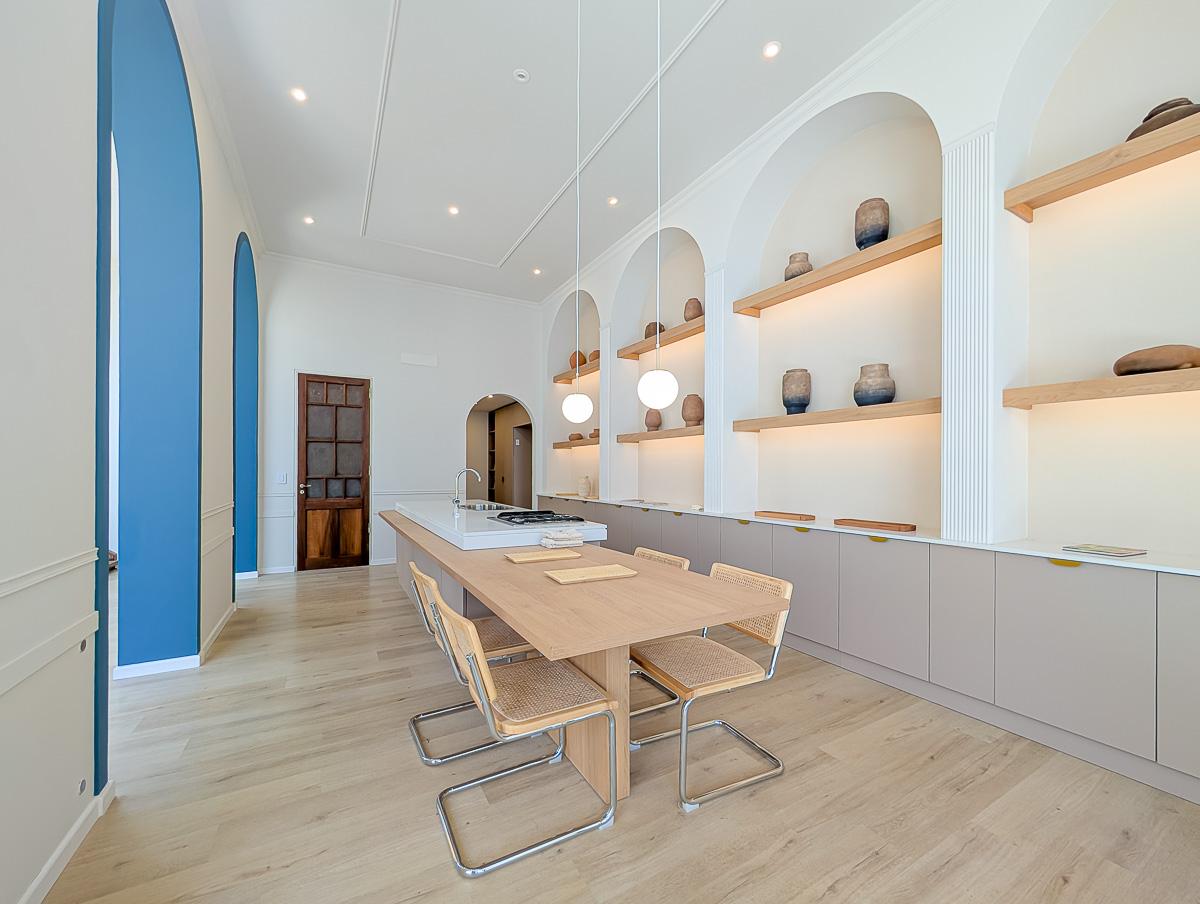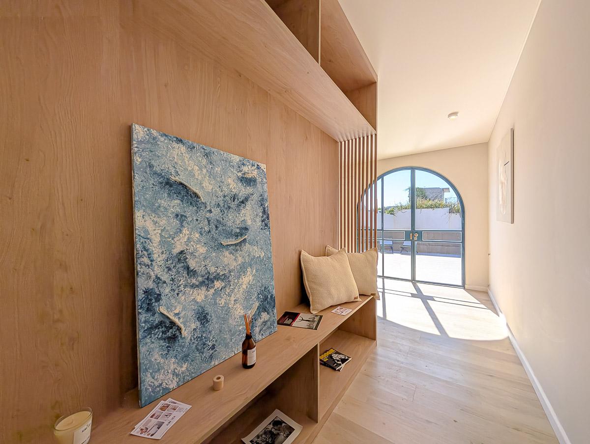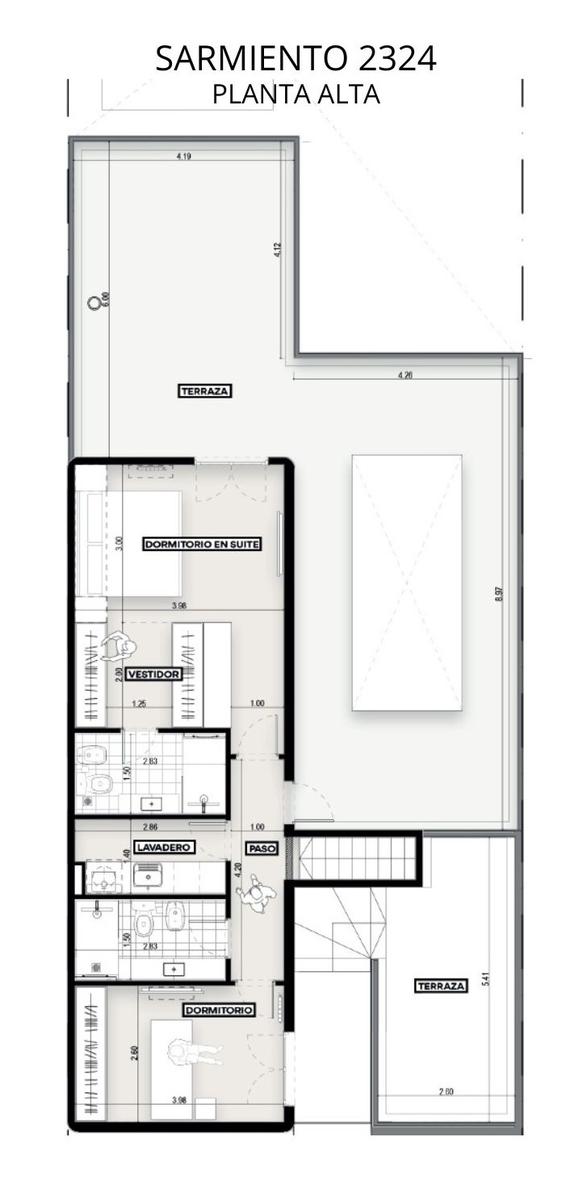 En Planta Baja Ingreso a pasillo distribuidor, comodín. Living comedor con salida al patio, cocina americana con isla con ventilación y salida a la galería con parrillero. Despensa. Jardín con Piscina, solárium. Baño completo. Toilette. Cochera. En Entre Piso se desarrolla un dormitorio con placard.En Planta Alta se encuentran dos dormitorios, uno con placard, el principal en suite con vestidor. Lavadero. Baño completo. Salida a terraza de uso exclusivo.