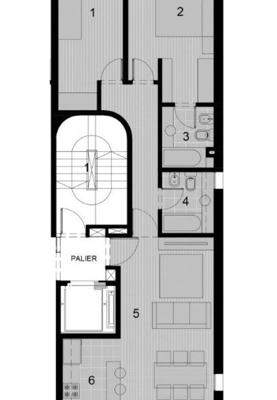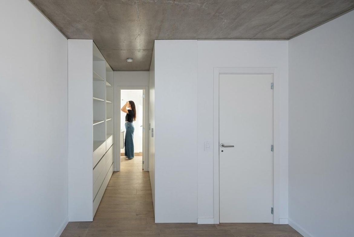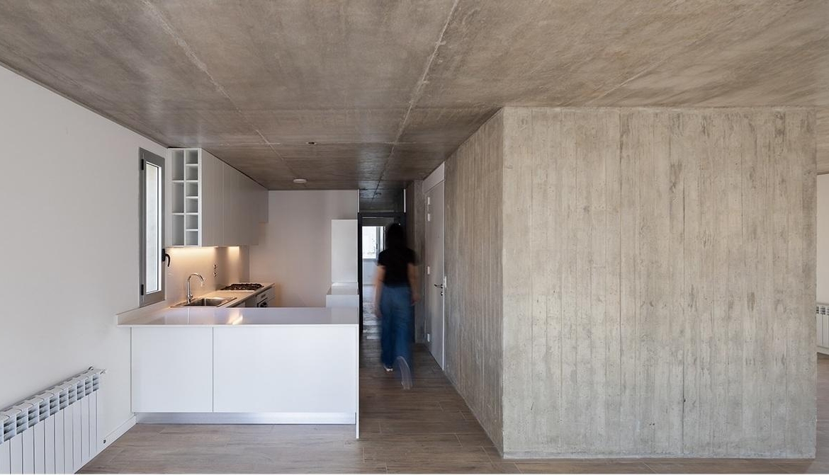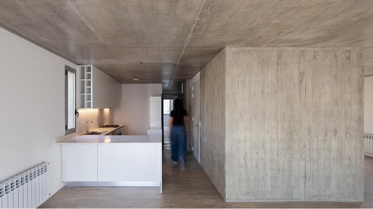 Departamento semipiso de dos dormitorios de 81.55 m2 con balcón. 73.05 m2 cubiertos y 8.50 m2 de balcón. Ventilación cruzada. Ingreso a estar comedor con cocina incorporada y salida a balcón al frente. Al contrafrente 2 dormitorios el principal en Suite con vestidor y escritorio. Segunda habitación con placard. Baño completo.