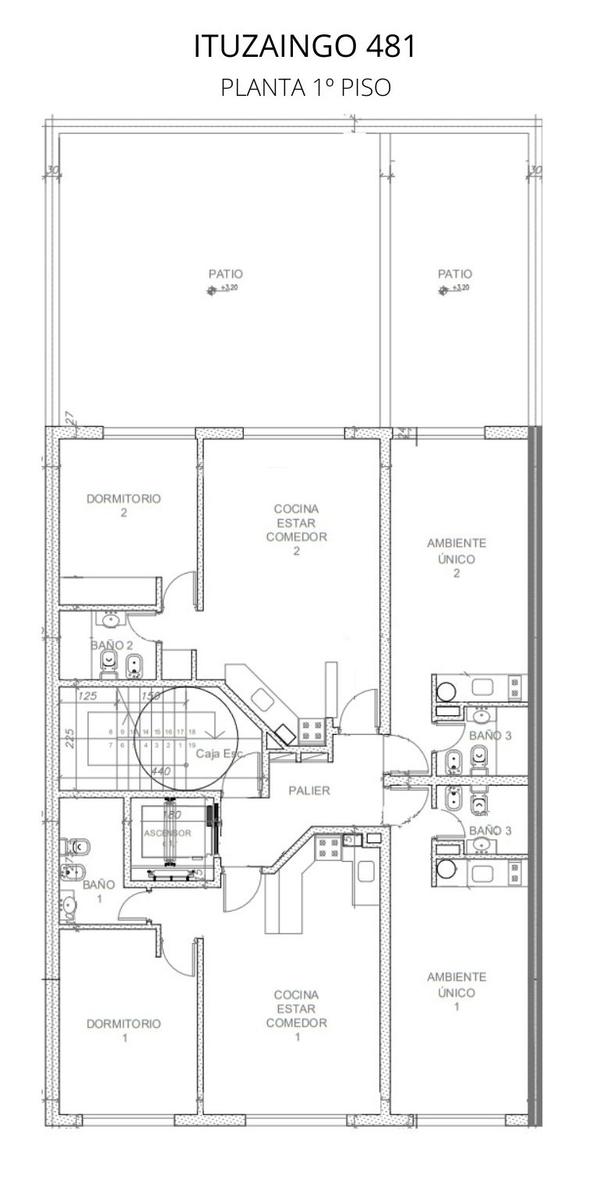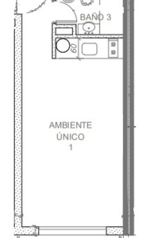 Monoambiente amplio al frente de 35 m2, 32 m2 cubiertos y 3 m2 de balcón. Amplio ambiente único con cocina integrada totalmente equipada. Baño completo