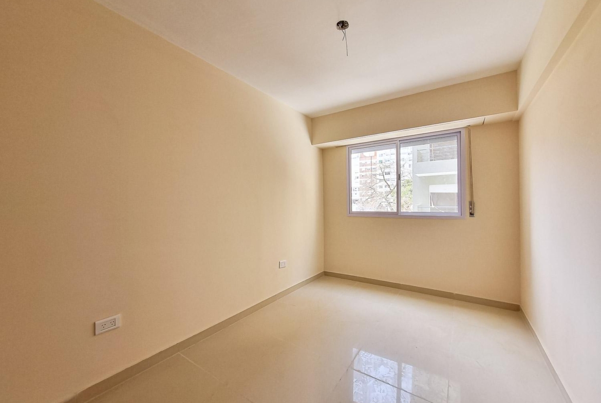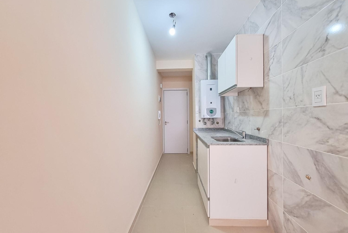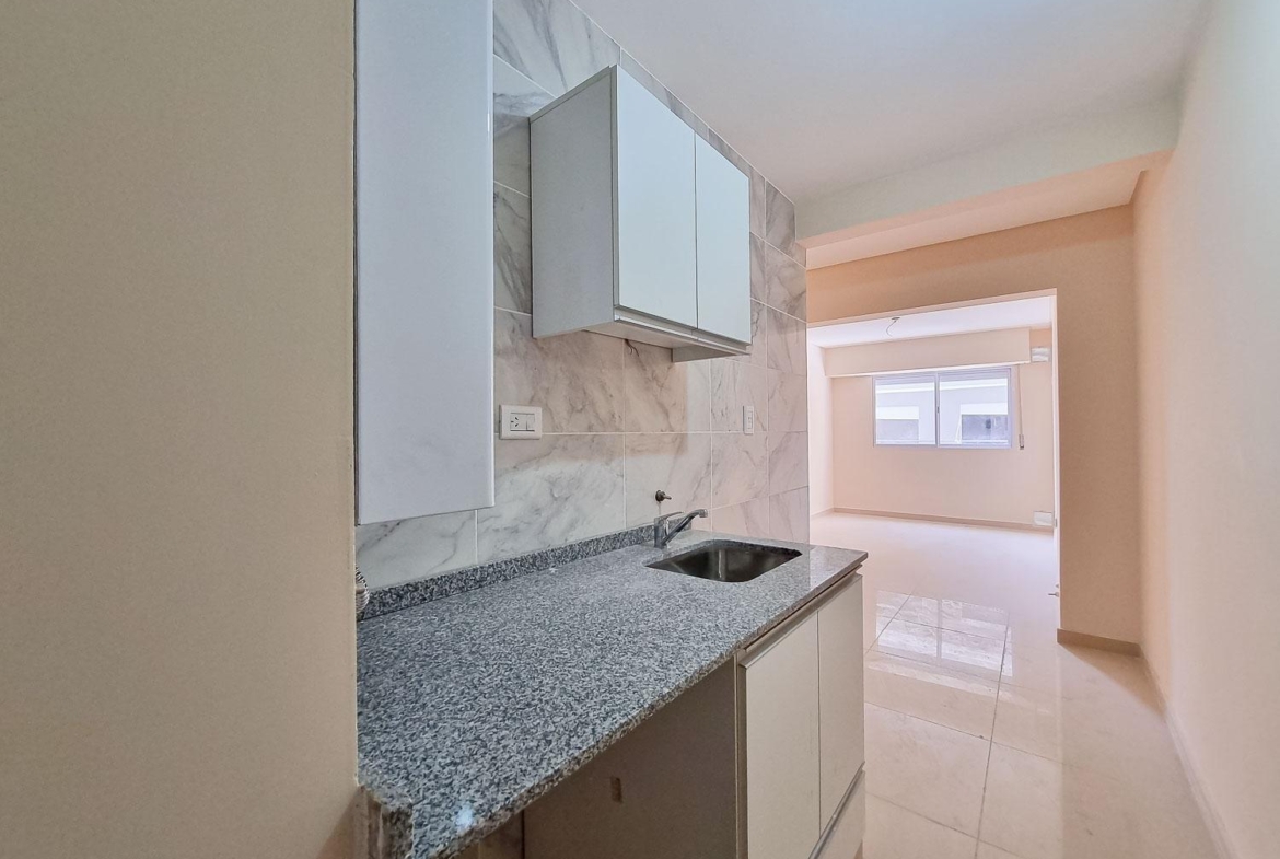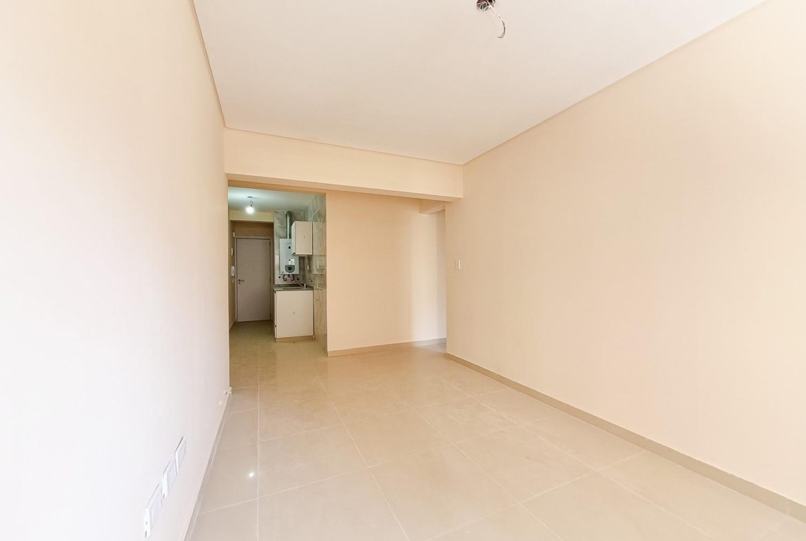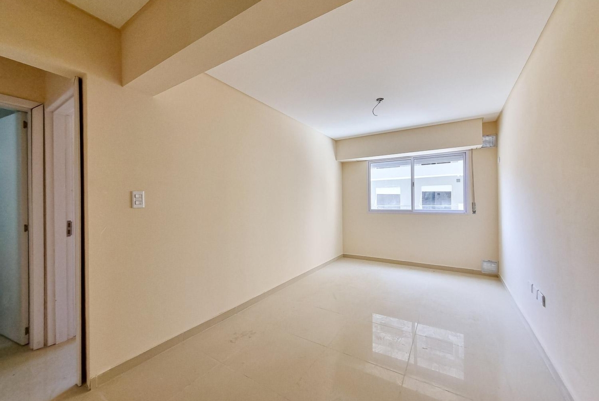 Departamento de 1 dormitorio al contrafrente de 45.50 m2, 42m2 cubiertos y 3.5 m2 de balcón, medianera sur. Cocina integrada al living comedor. Un dormitorio con placard. Un baño completo.