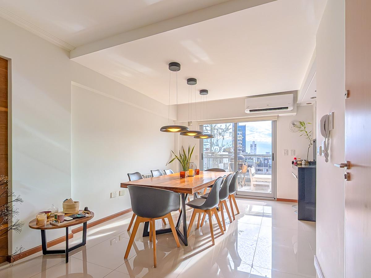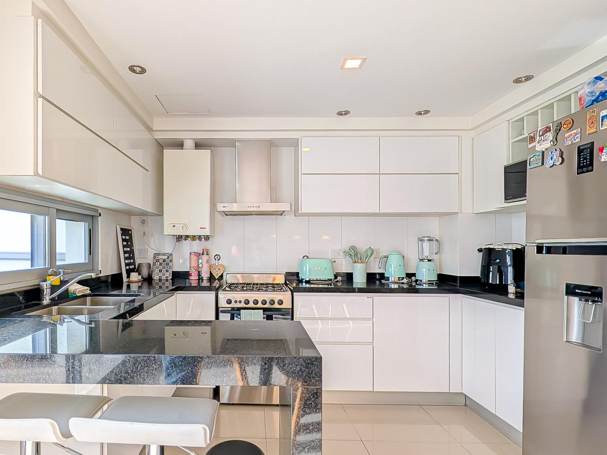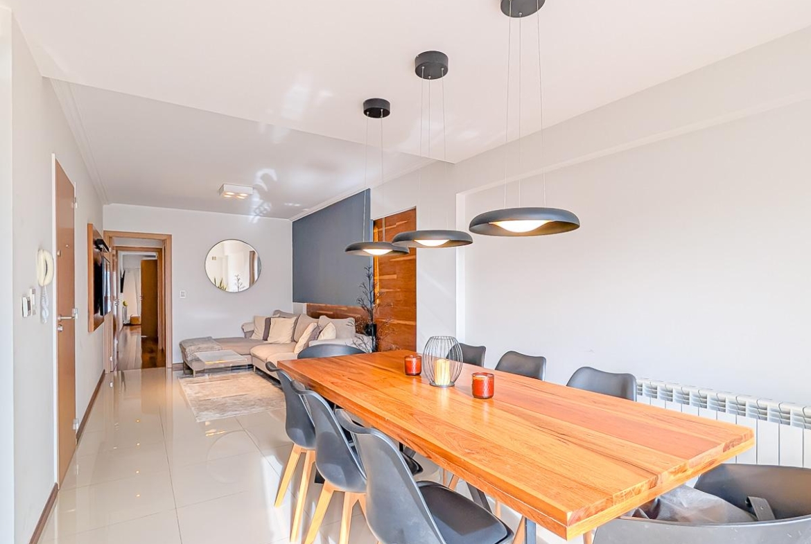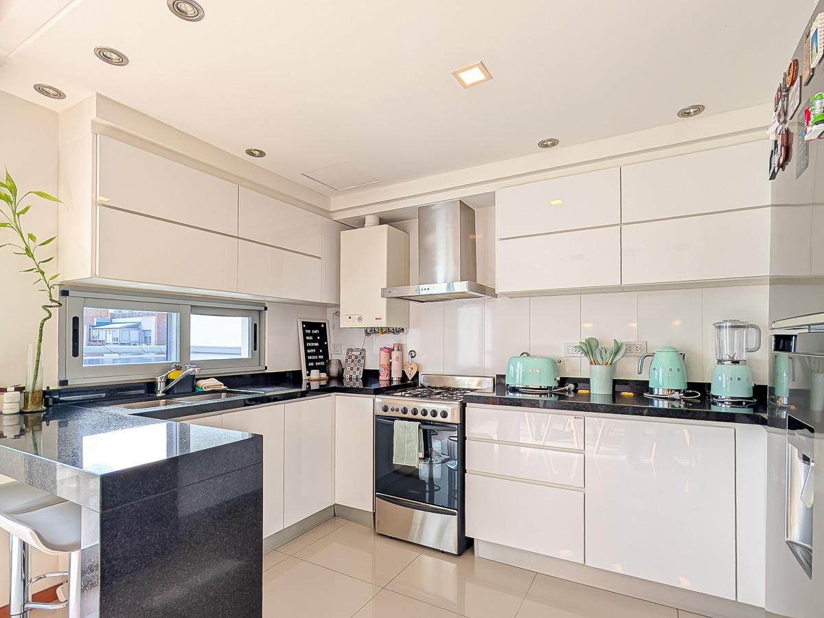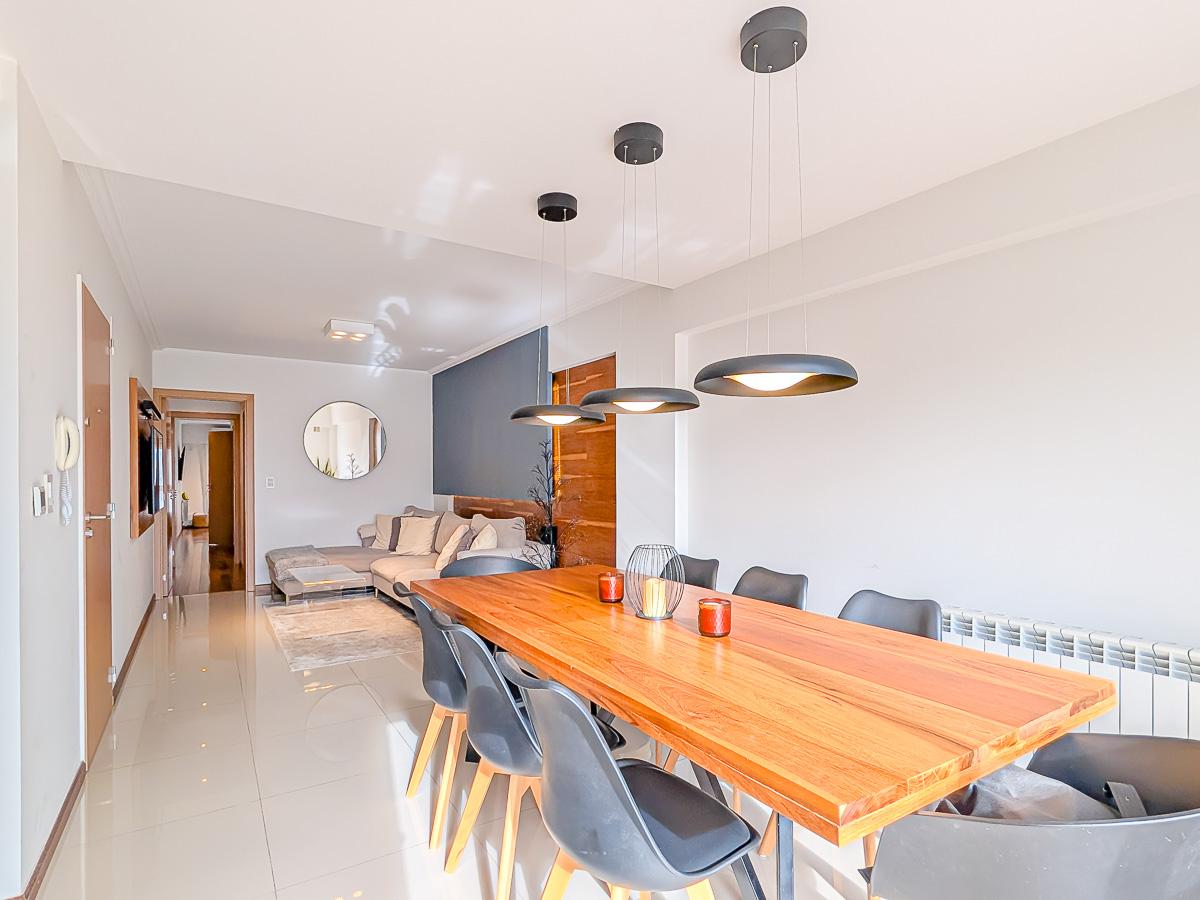 Ingreso con puerta blindada. Amplio Living comedor con salida al balcón terraza. Cocina semiseparada por barra desayunadora totalmente equipada. Dos dormitorios con vestidores y uno en suite. Otro baño completo. Lavadero Independiente.
