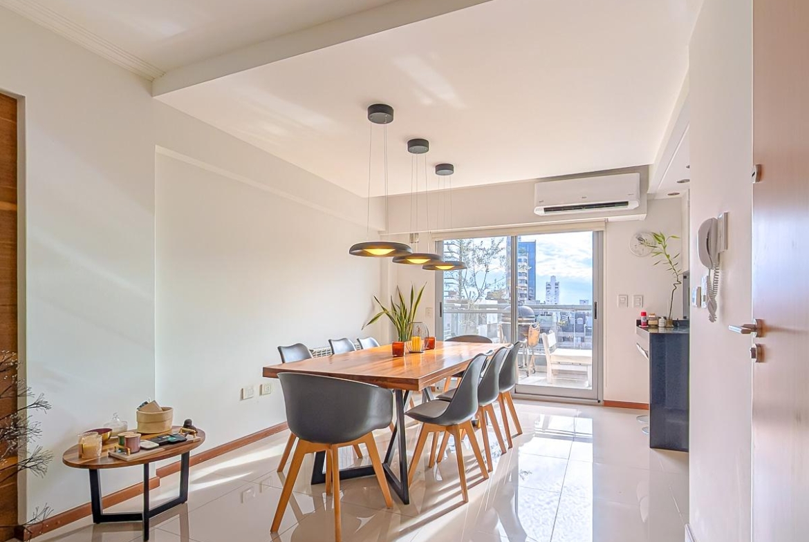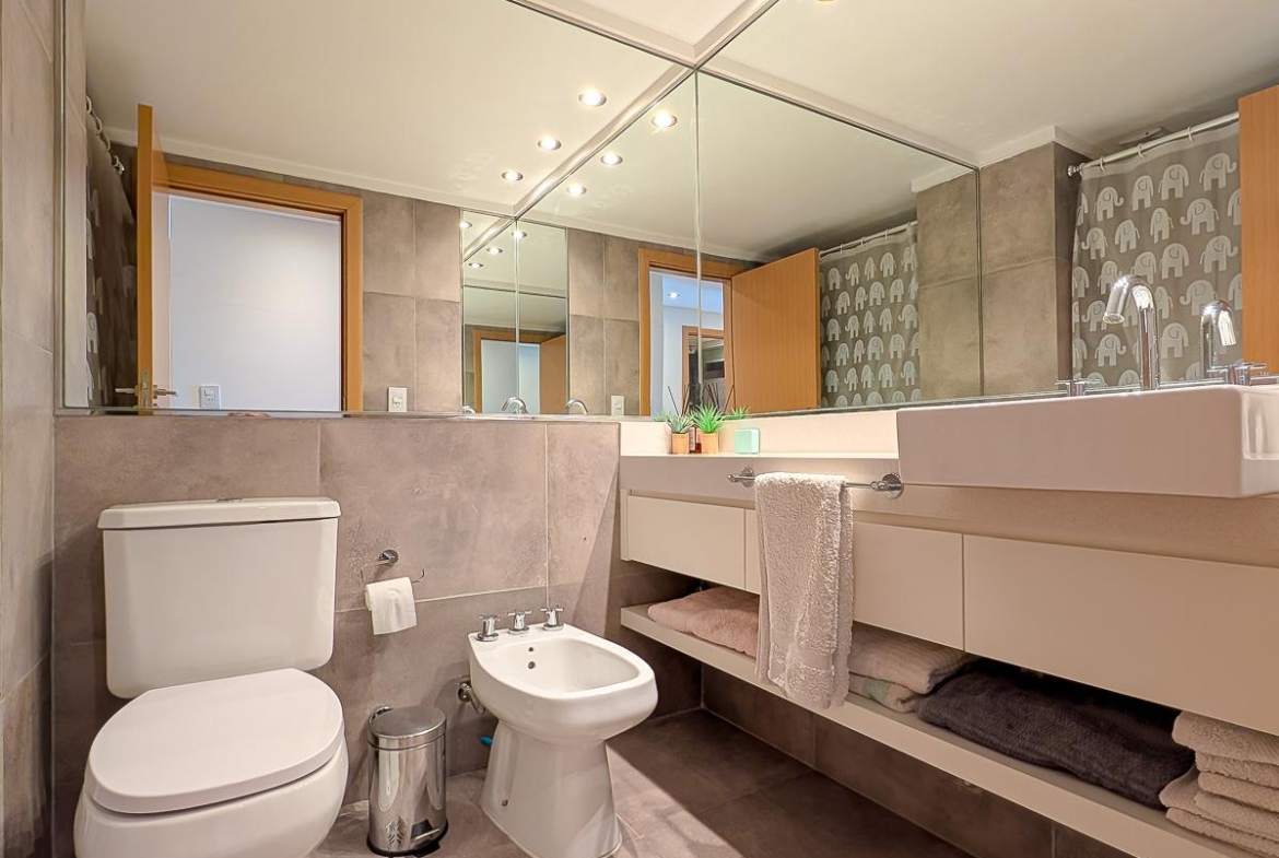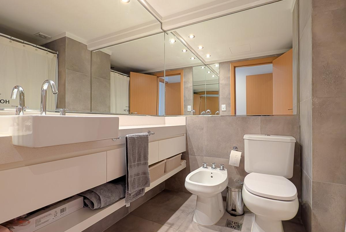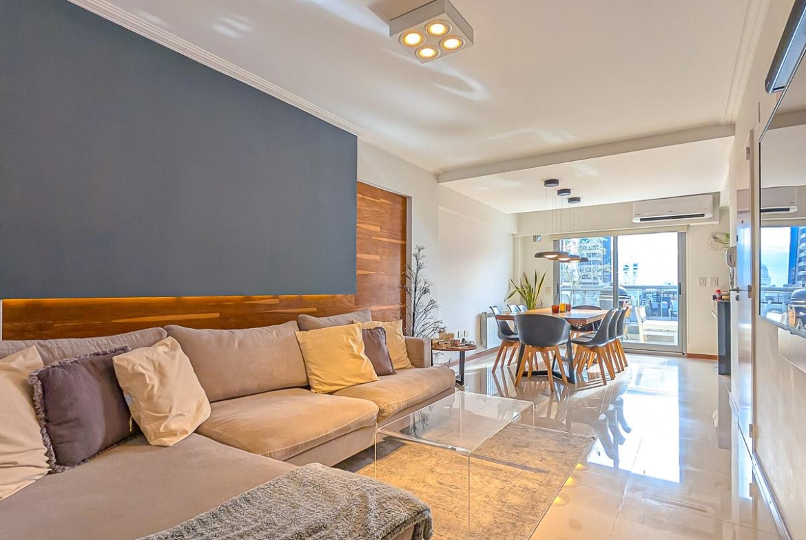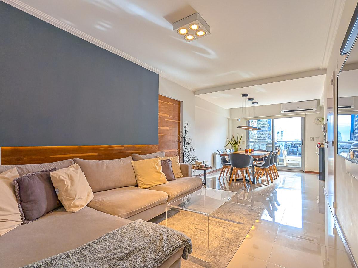 Ingreso con puerta blindada. Amplio Living comedor con salida al balcón terraza. Cocina semiseparada por barra desayunadora totalmente equipada. Dos dormitorios con vestidores y uno en suite. Otro baño completo. Lavadero Independiente.